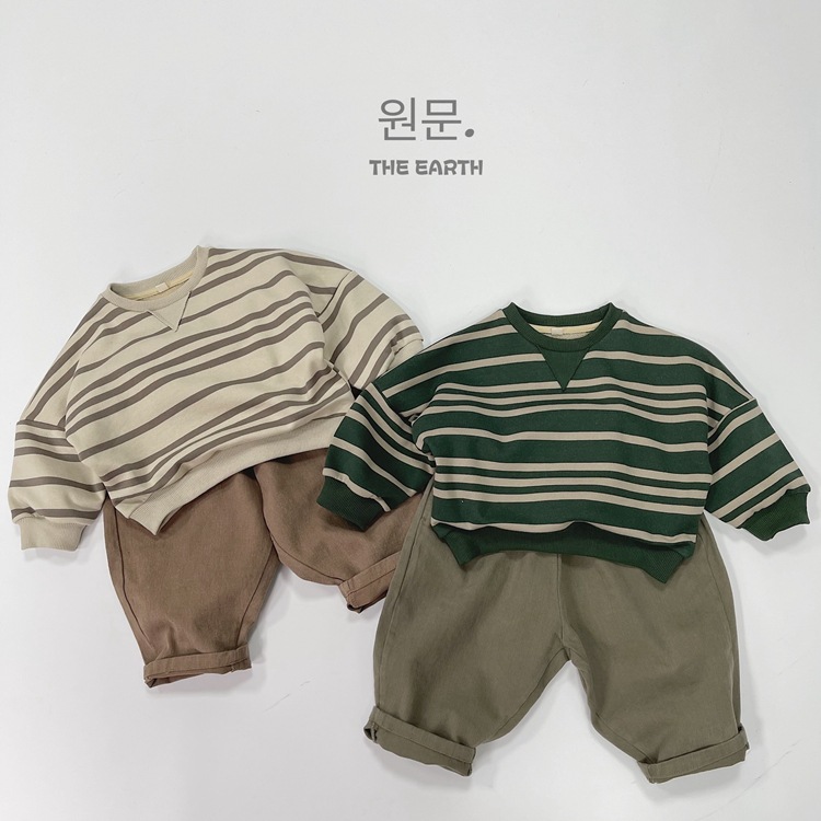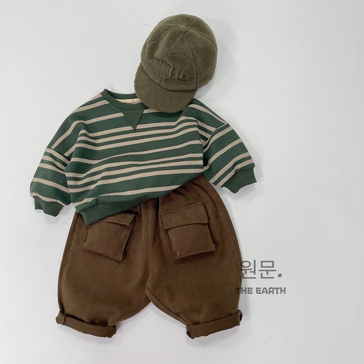 어린이 스트라이프 긴팔 스웨터 가을 새로운 한국 스타일 소년 소녀 라운드 넥 캐주얼 긴팔 탑 아기의 유행 스웨터