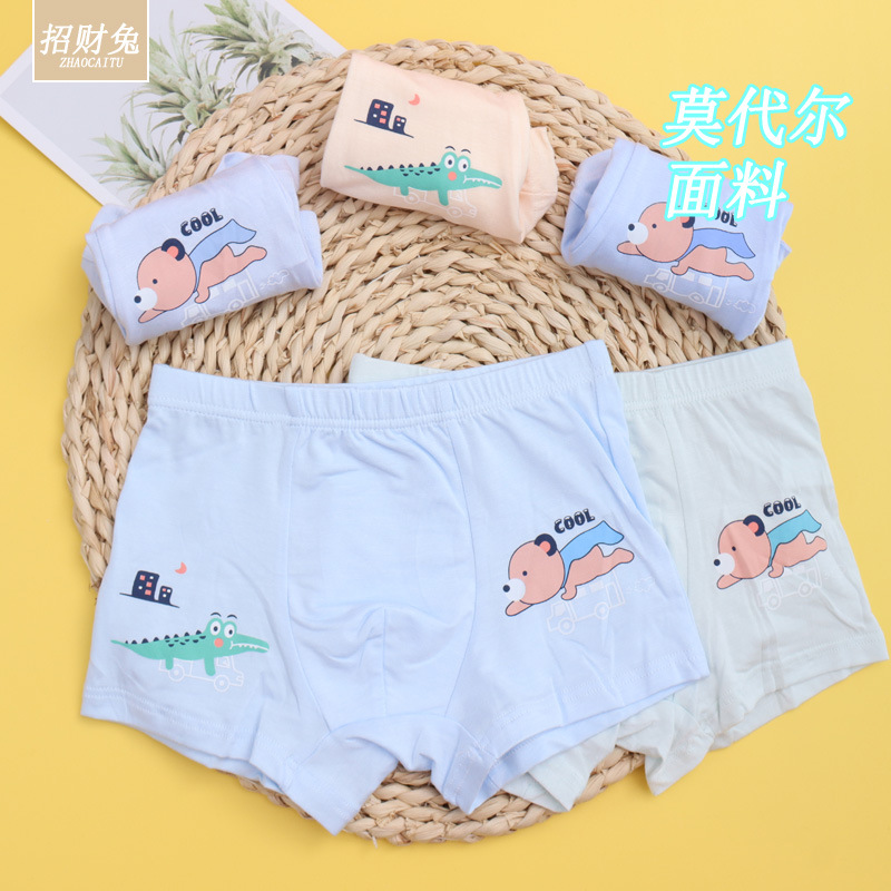 행운의 토끼 모달 면화 어린이 속옷 남자 중학교 어린이 플랫 앵글 학생 만화 세균성 속옷 2-12 세 도매