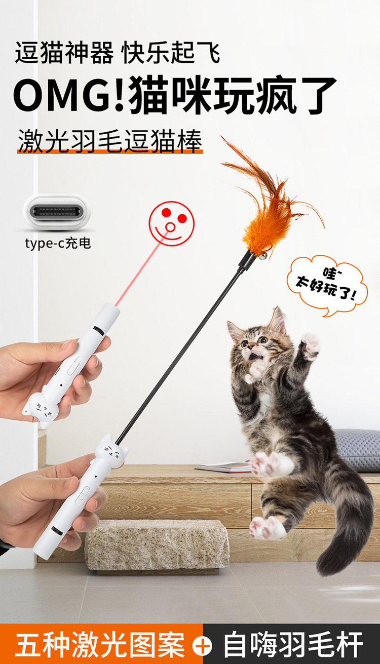 애완 동물 용품 고양이 장난감 레이저 고양이 놀리는 스틱 고양이 장난감 USB 레이저 펜 깃털 자기 즐거움 구호 고양이 놀리는 펜