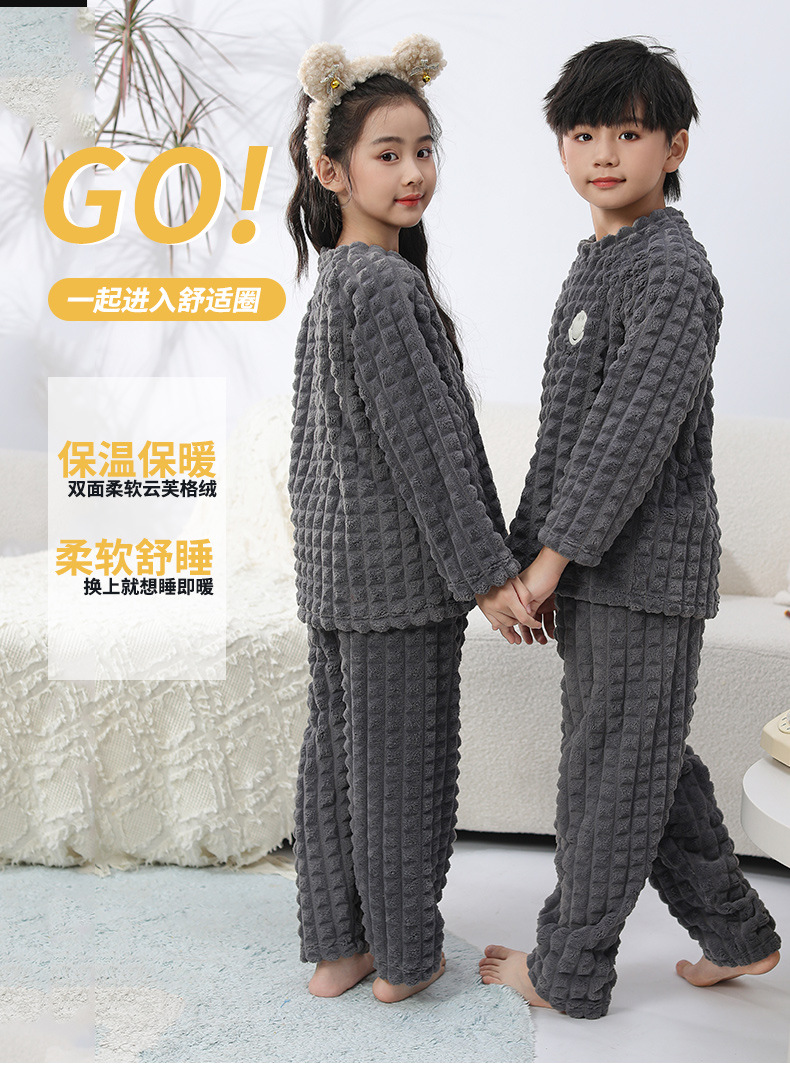 겨울 어린이 잠옷 두꺼운 플란넬 가정 옷 세트 소년 어린 소녀의 따뜻한 패딩 세트 잠옷