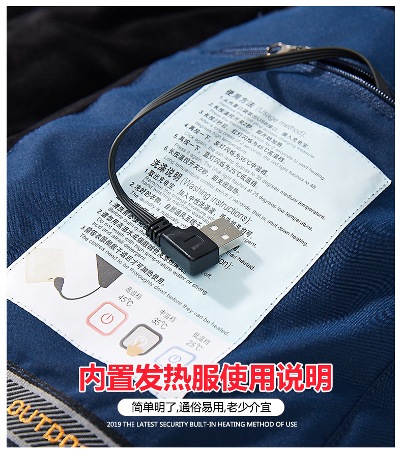 지능형 일정한 온도 난방 충전 의류 새로운 가을 겨울 소프트 쉘 면 패딩 의류 남성용 USB 전원 공급 장치 방풍 따뜻한 등산 의류스토어 가기