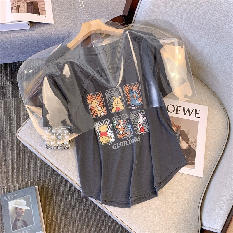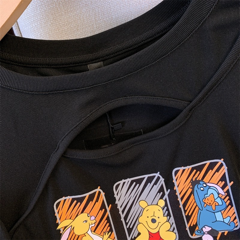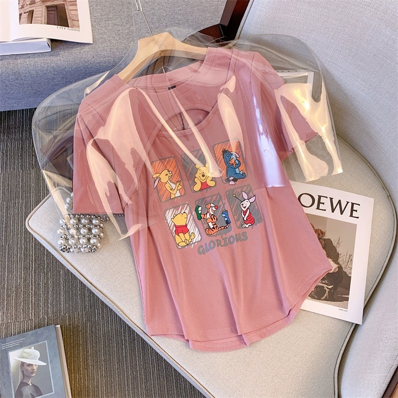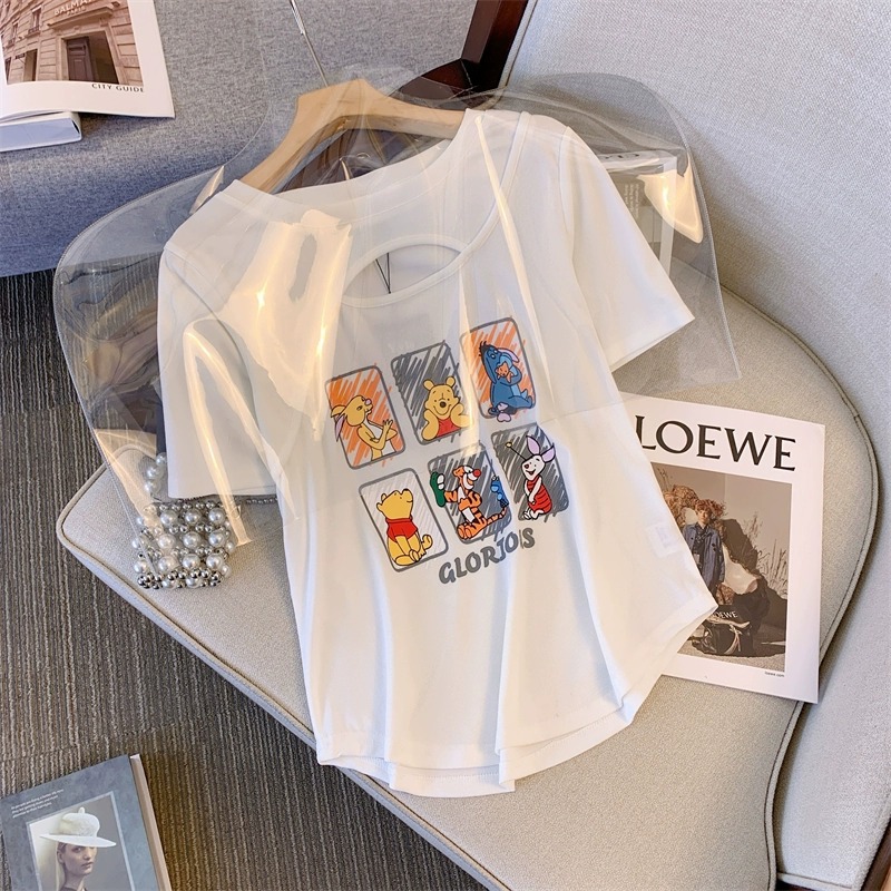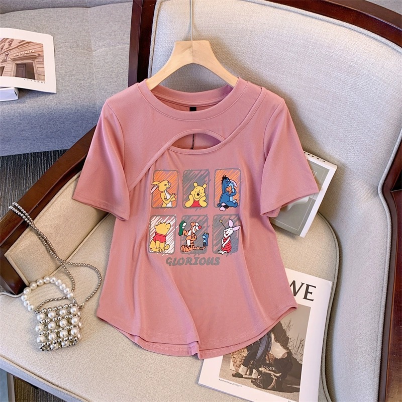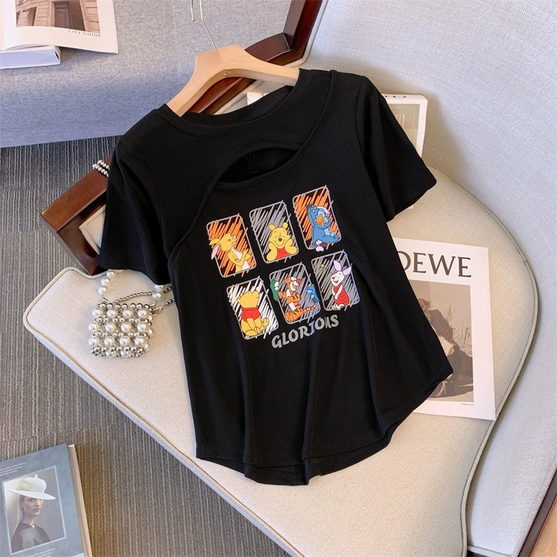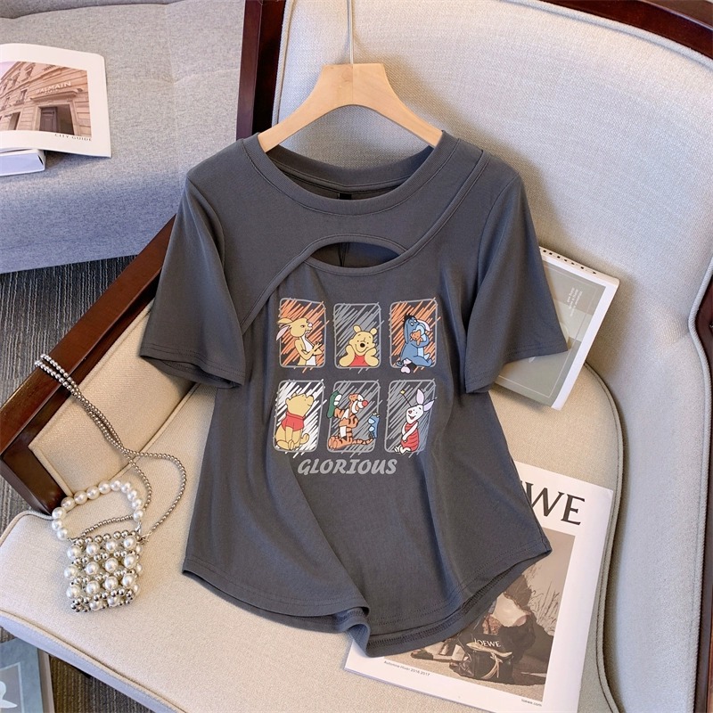 플러스 사이즈 여자의 여름 새로운 어깨 반팔 티셔츠 여자의 통통녀 살 커버 슬리밍 중공 디자인 틈새 탑스토어 가기