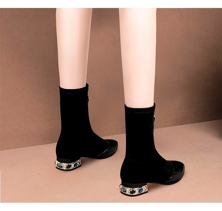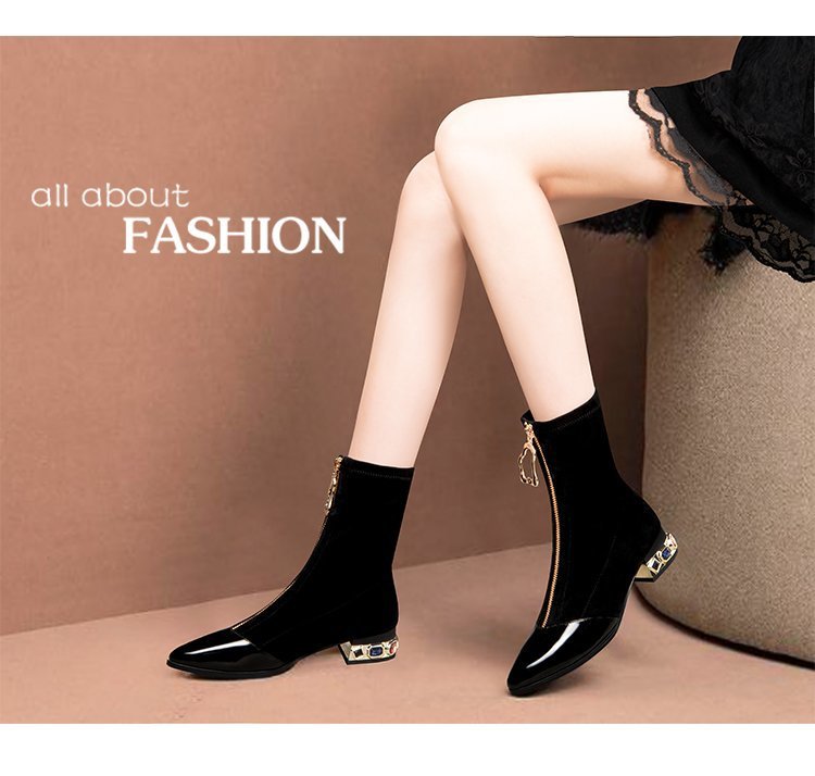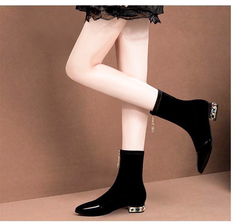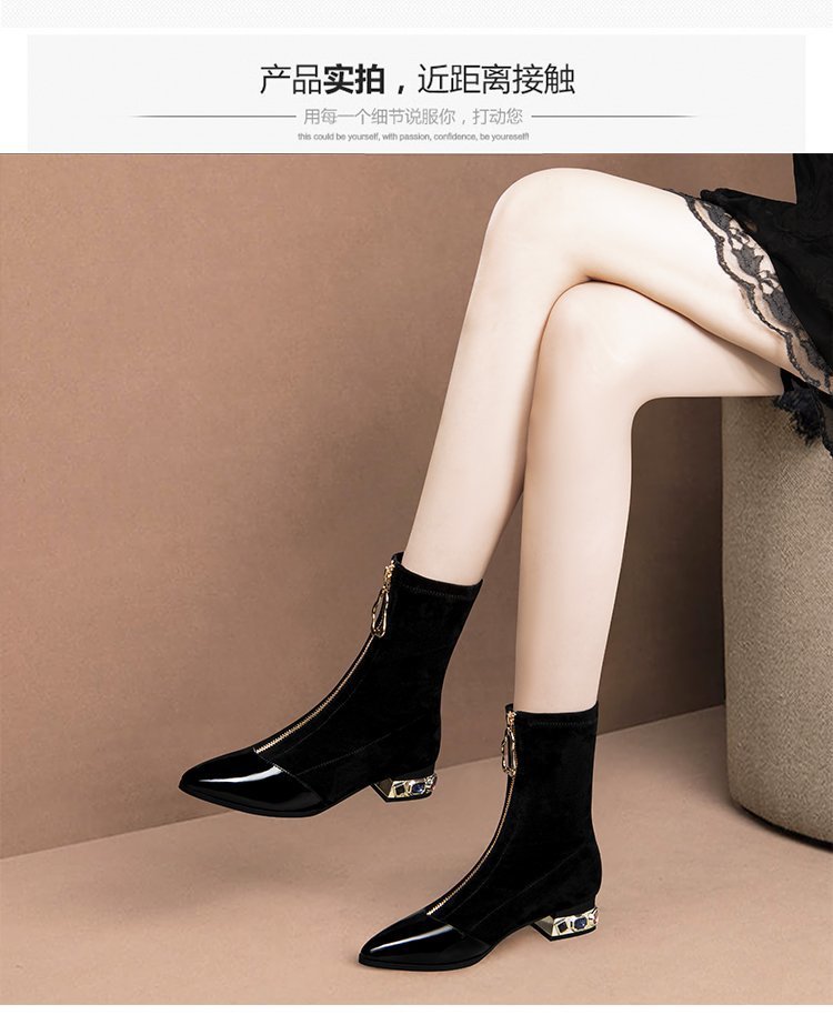2025 가을 겨울 신상 유럽 및 미국 패션 얇은 벨벳 숏부츠, 앞면 지퍼가 있는 슬림 여성 부츠스토어 가기