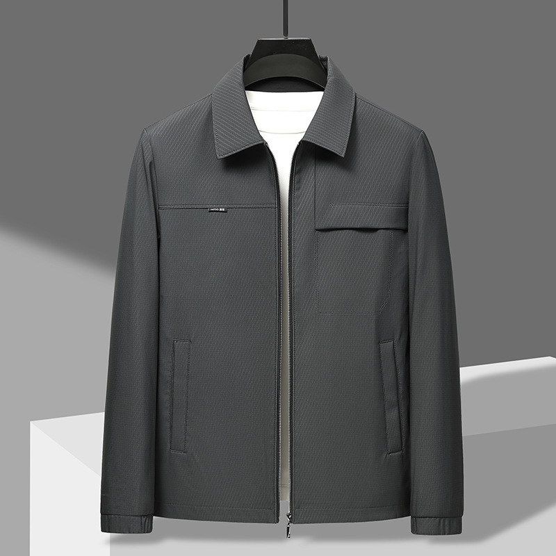새로운 남성 자켓 비즈니스 코트 가을 중년 능직 카디건 옷깃 아빠 지퍼 재킷 도매