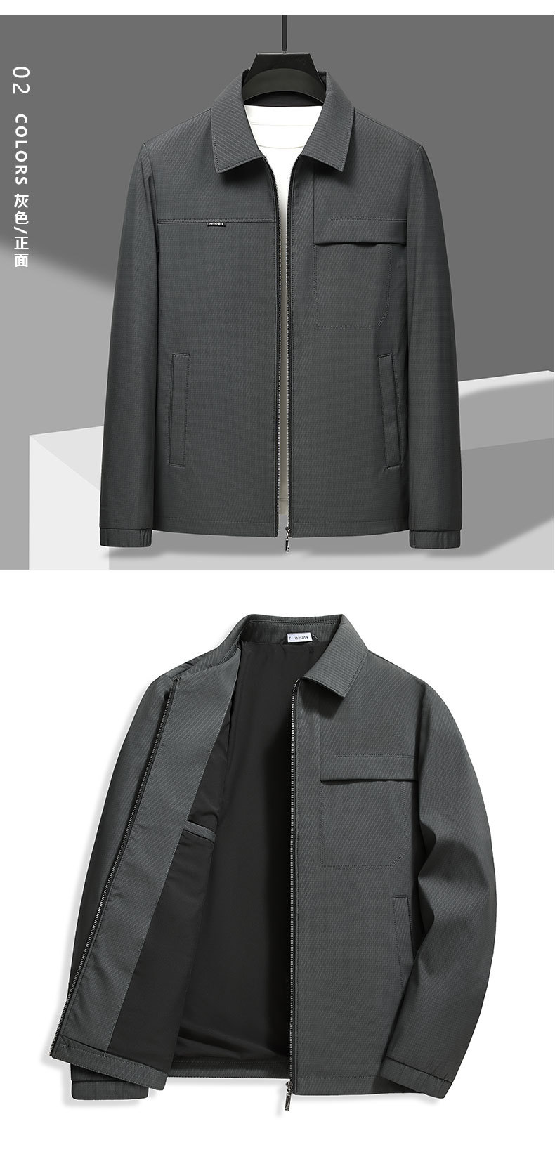 새로운 남성 자켓 비즈니스 코트 가을 중년 능직 카디건 옷깃 아빠 지퍼 재킷 도매스토어 가기