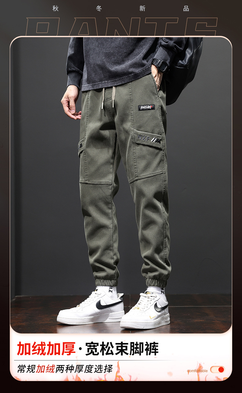 Yunyun 2023 가을 겨울 새로운 캐주얼 다리 청바지 남성용 트렌디한 슬림핏 모든 매치 패션 남성용 Cockwork 바지스토어 가기