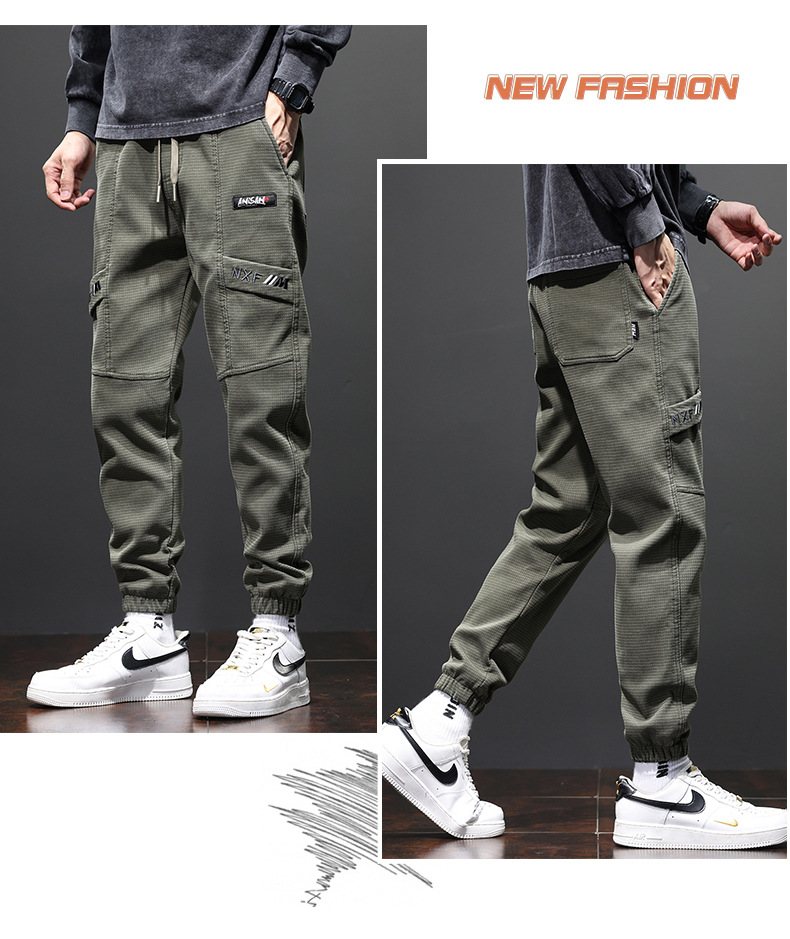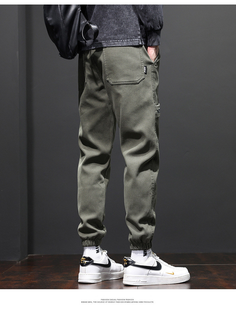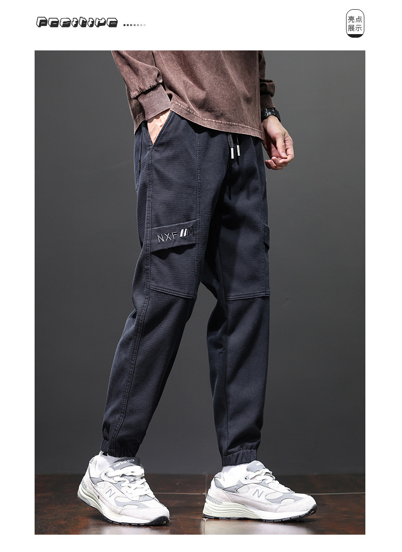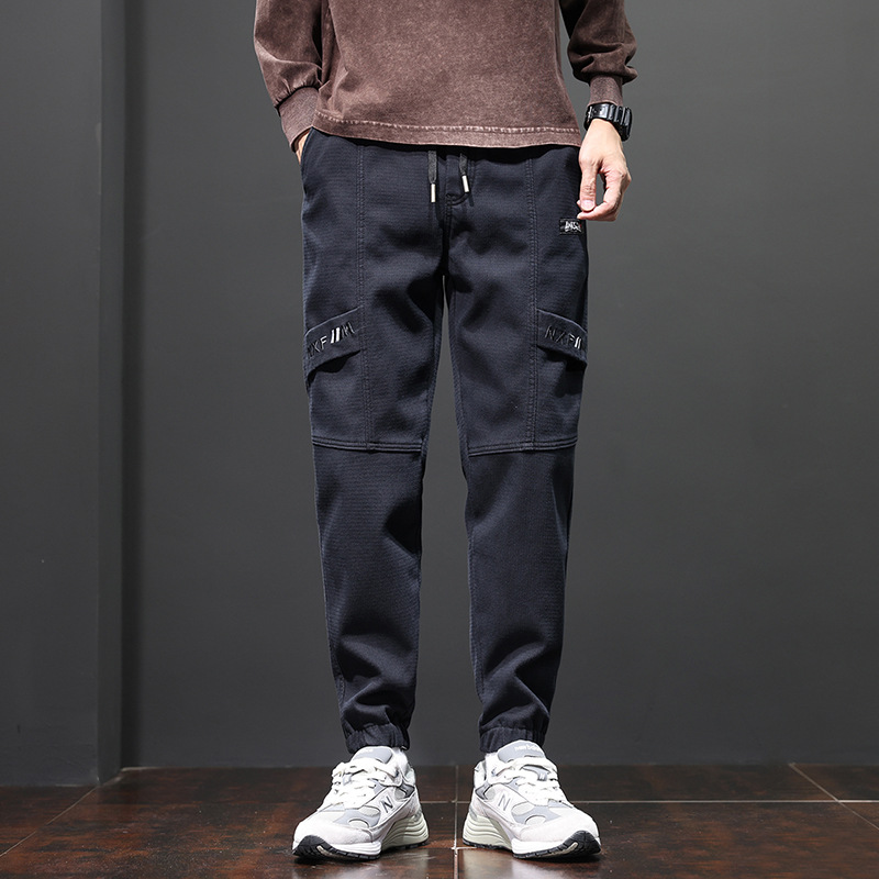 Yunyun 2023 가을 겨울 새로운 캐주얼 다리 청바지 남성용 트렌디한 슬림핏 모든 매치 패션 남성용 Cockwork 바지
