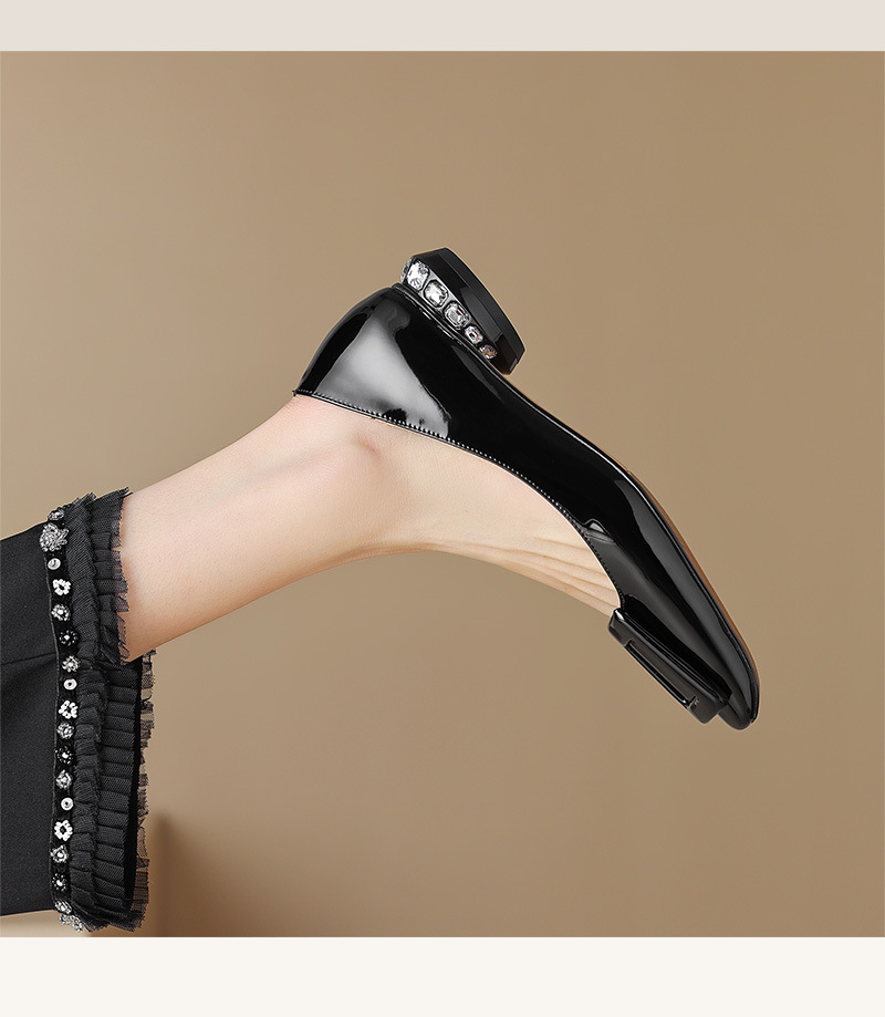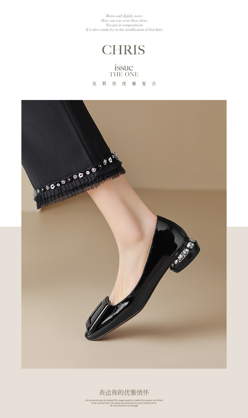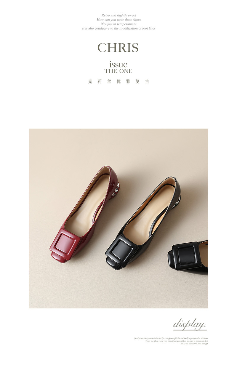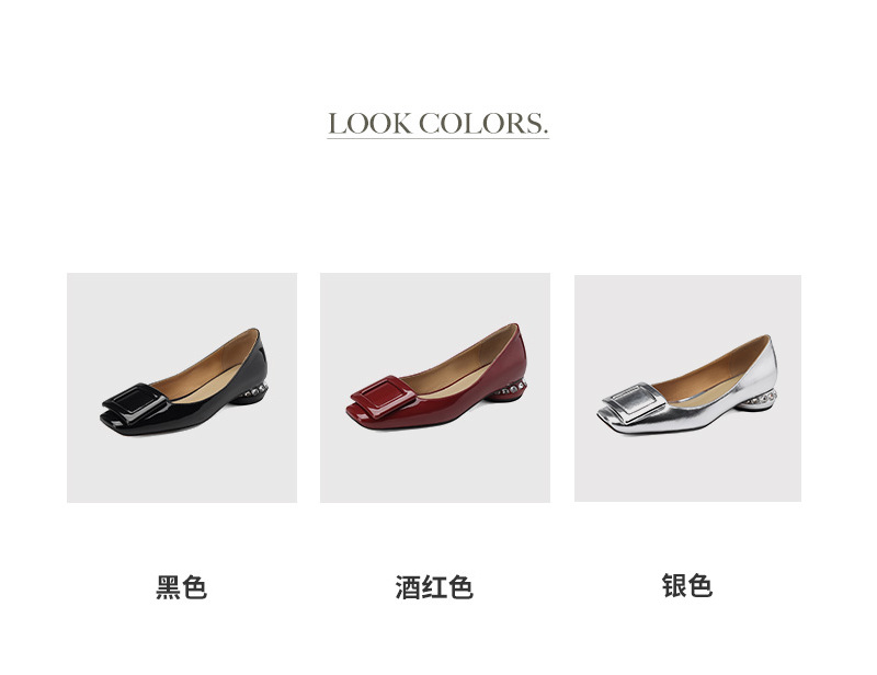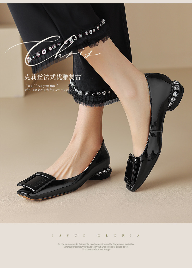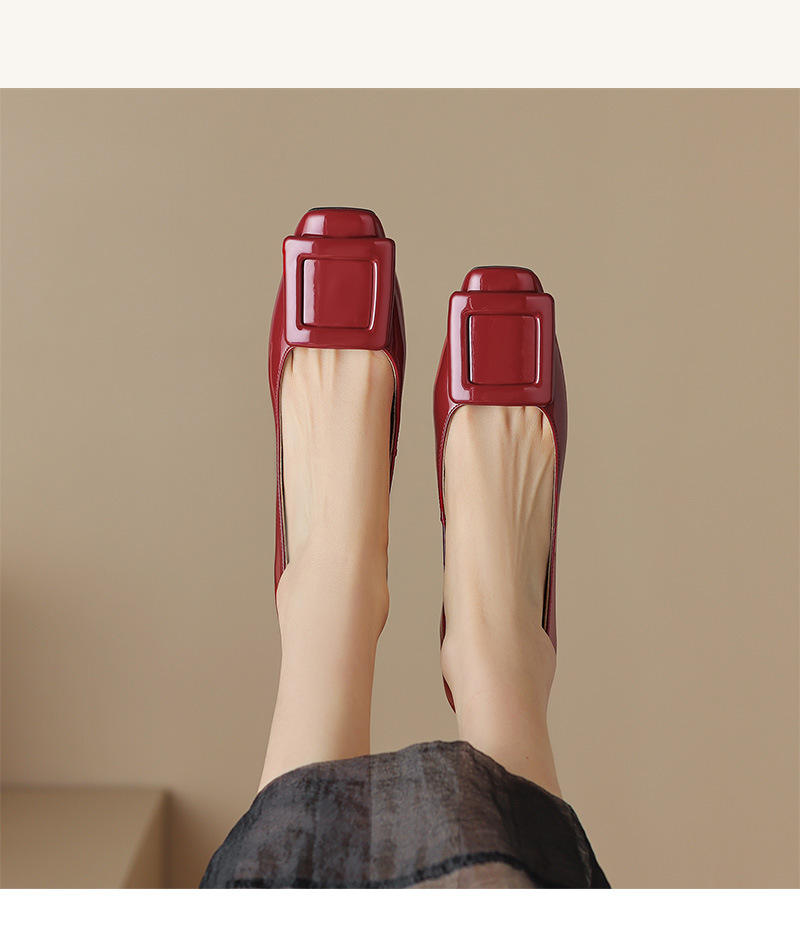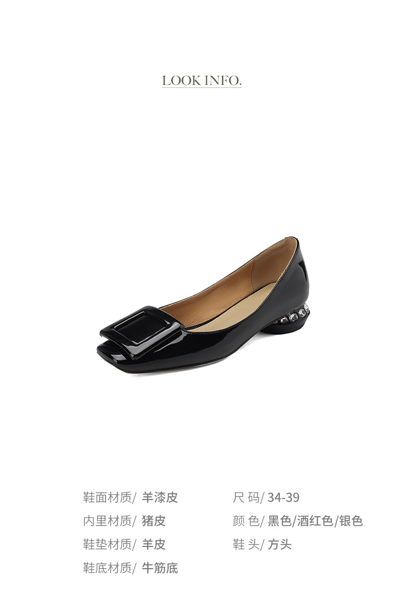 Rv 스퀘어 버클 플랫 싱글 레이어 슈즈 여성용 2023 봄과 가을 신상품 양가죽 모든 매치 실버 스퀘어 토 얕은 입 낮은 청키 힐 여성 신발스토어 가기