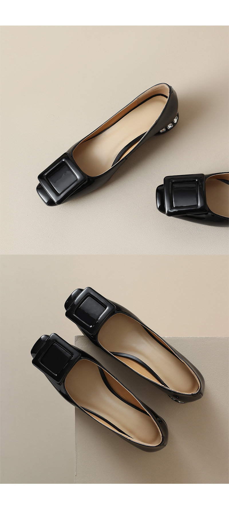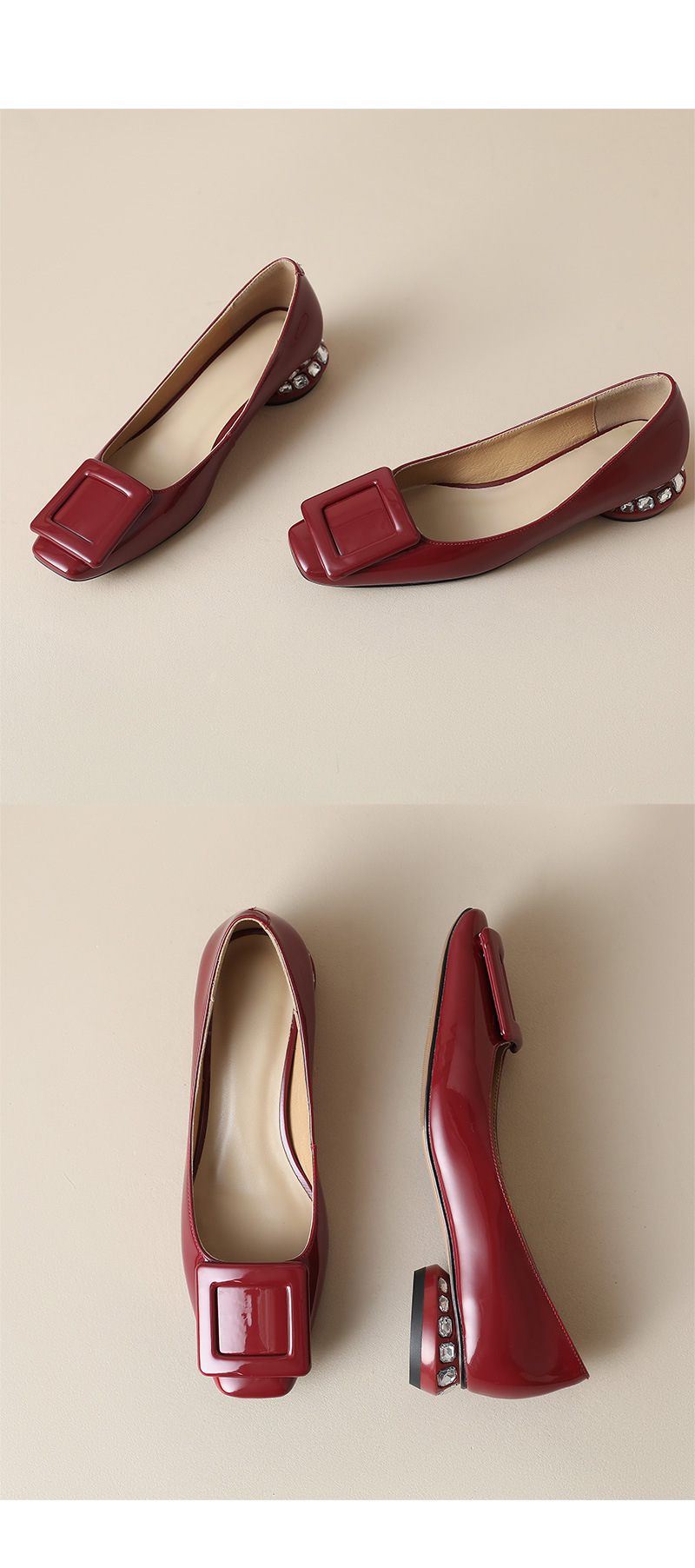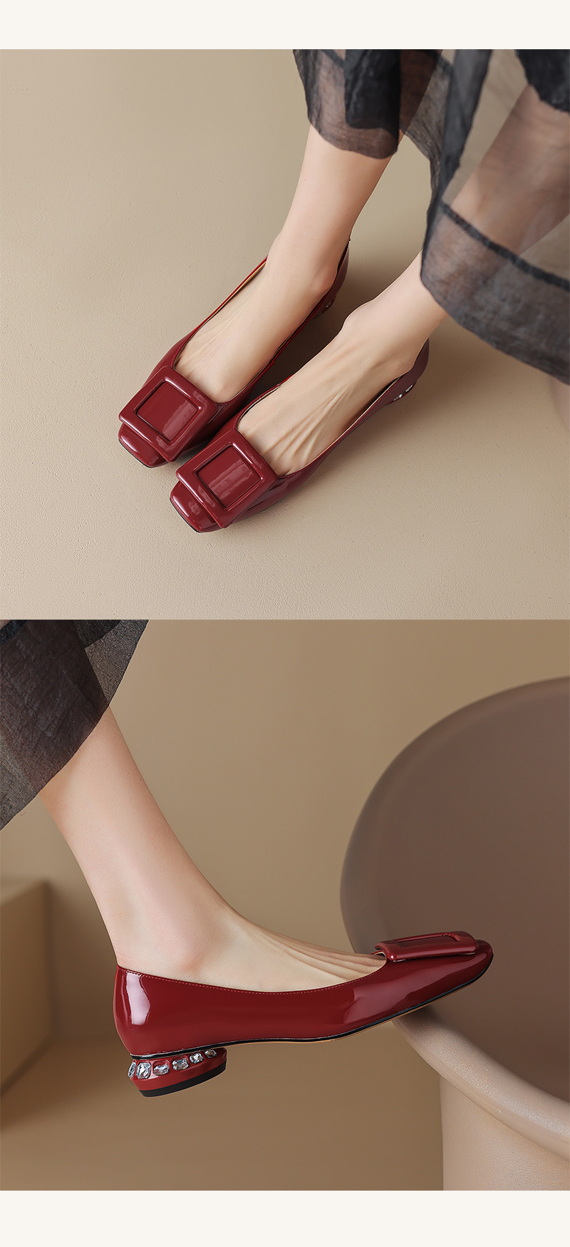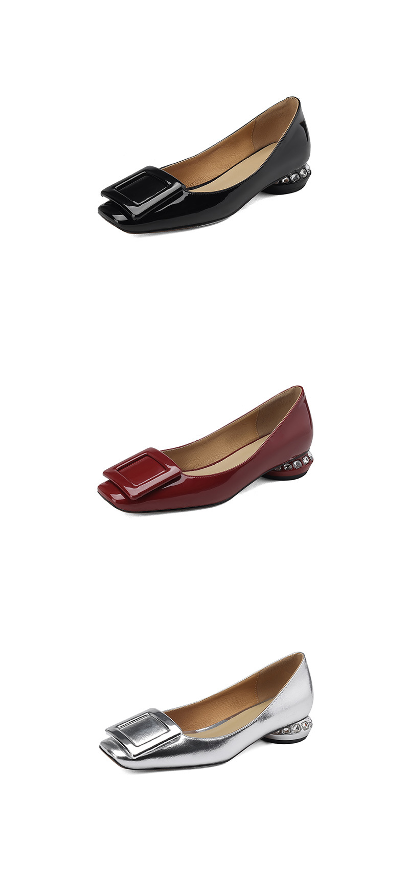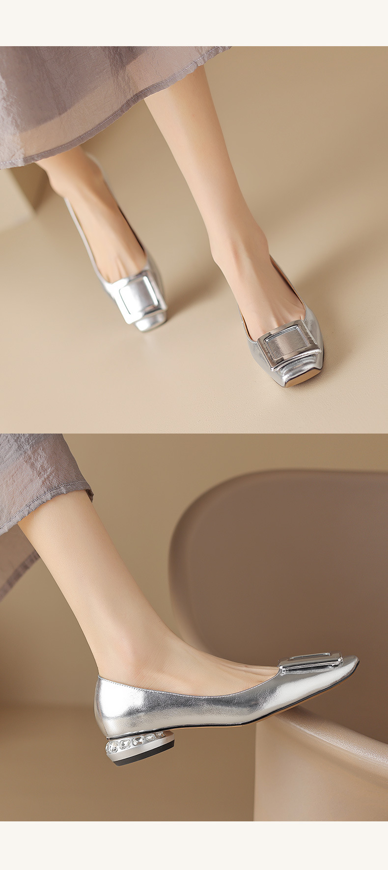 Rv 스퀘어 버클 플랫 싱글 레이어 슈즈 여성용 2023 봄과 가을 신상품 양가죽 모든 매치 실버 스퀘어 토 얕은 입 낮은 청키 힐 여성 신발스토어 가기