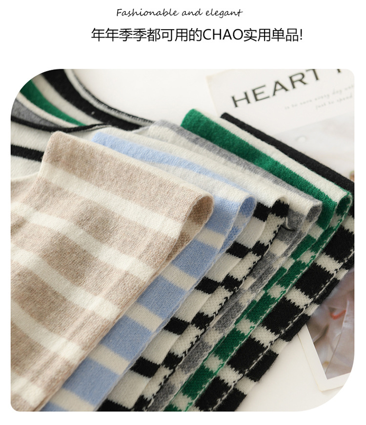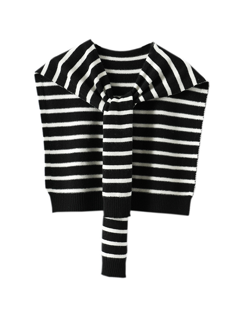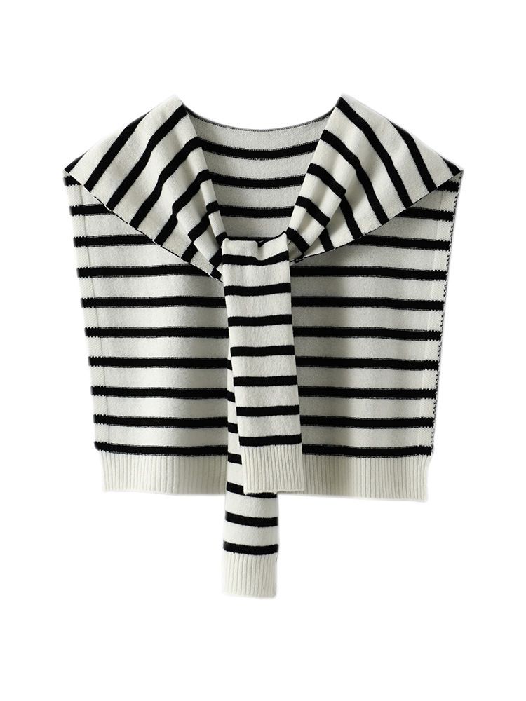 YAN 셀렉션 100% 울 스트라이프 숄 여성용 매듭 니트 스카프 에어컨 방에서 셔츠와 함께 입는 스트라이프 숄