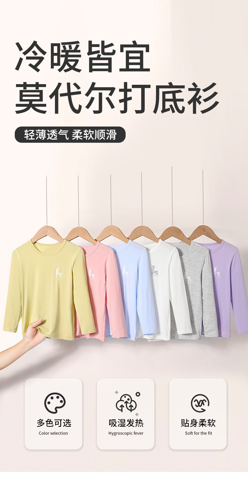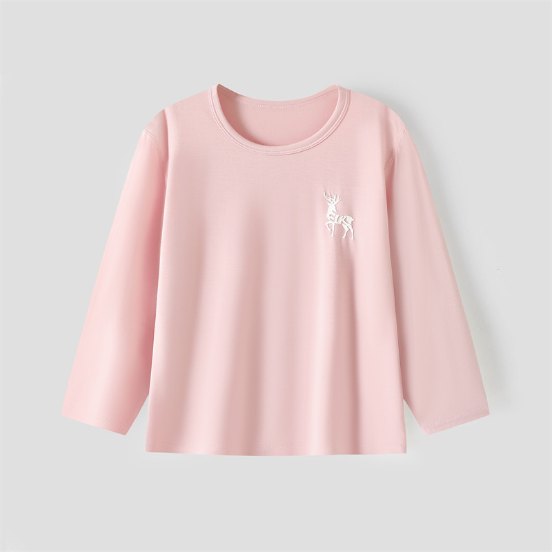 어린이 기본 셔츠 모달 가을 옷 봄과 가을 얇은 라운드 넥 탑 여아 이너웨어 티셔츠 남아 새로운 잠옷