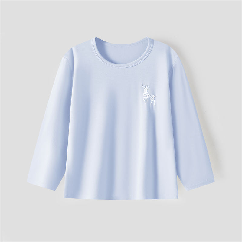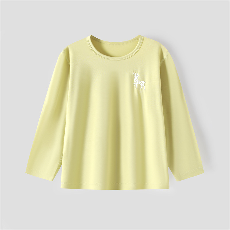 어린이 기본 셔츠 모달 가을 옷 봄과 가을 얇은 라운드 넥 탑 여아 이너웨어 티셔츠 남아 새로운 잠옷스토어 가기