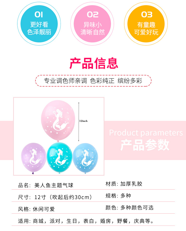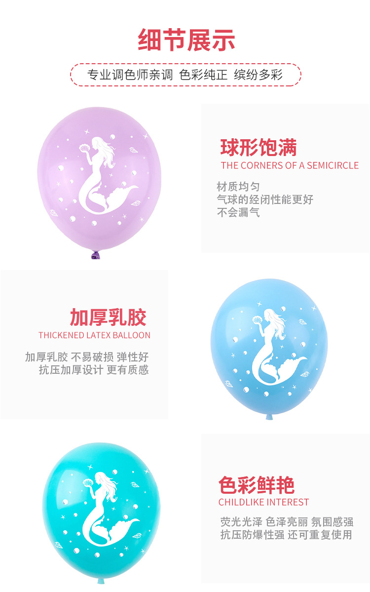 크로스 보더 12 인치 인어 생일 테마 파티 장면 장식 풍선 바다 인어 라텍스 풍선 세트스토어 가기
