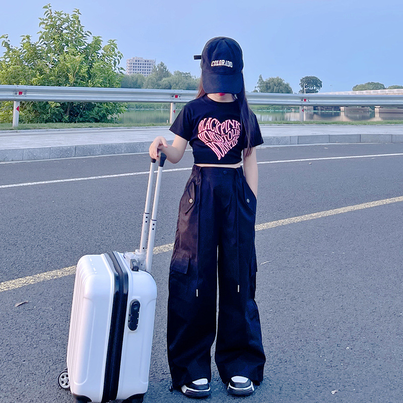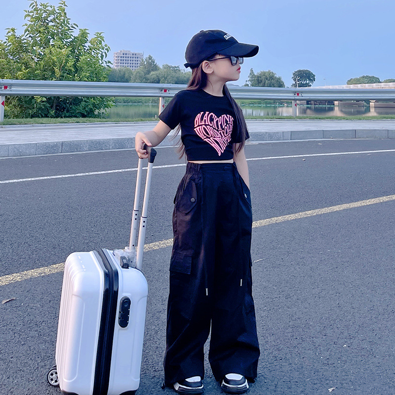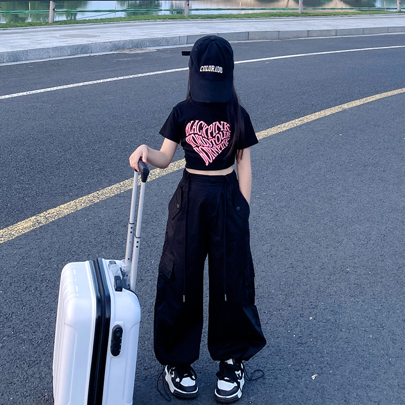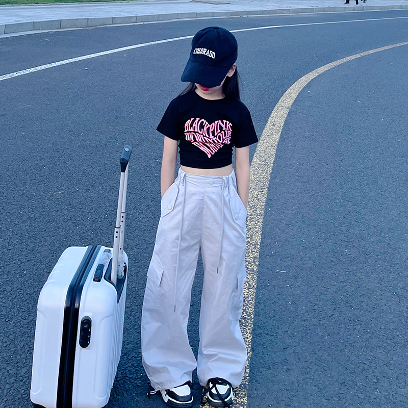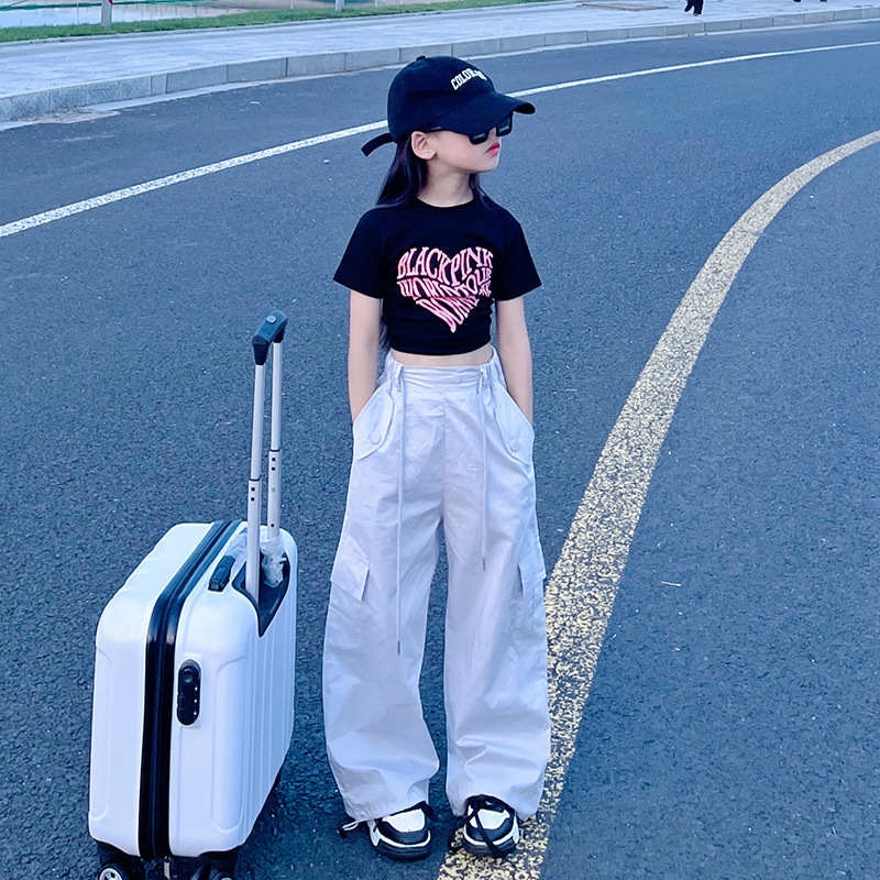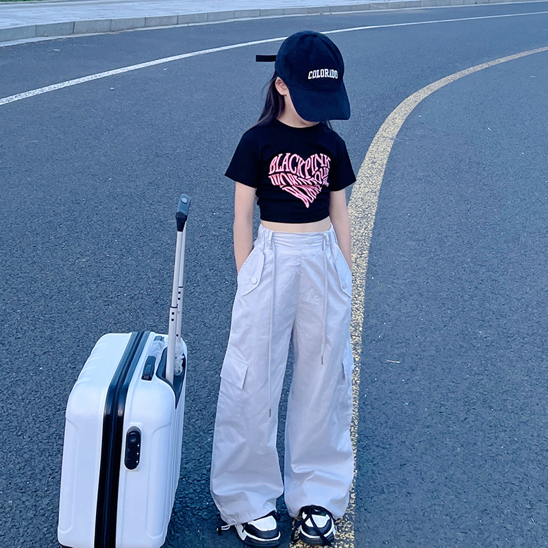 여아 Cockwork 바지 여름 세트 얇은 스트레이트 와이드 팬츠 큰 어린이 발목 묶은 바지 어린이 스트리트 댄스 속건 바지 트렌디스토어 가기