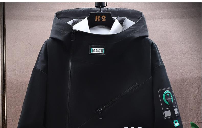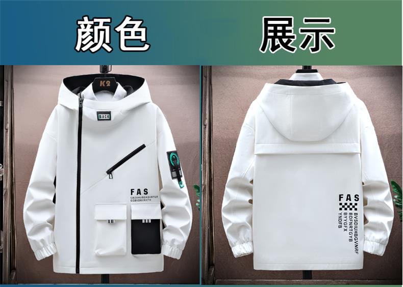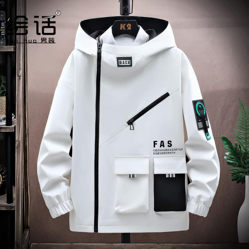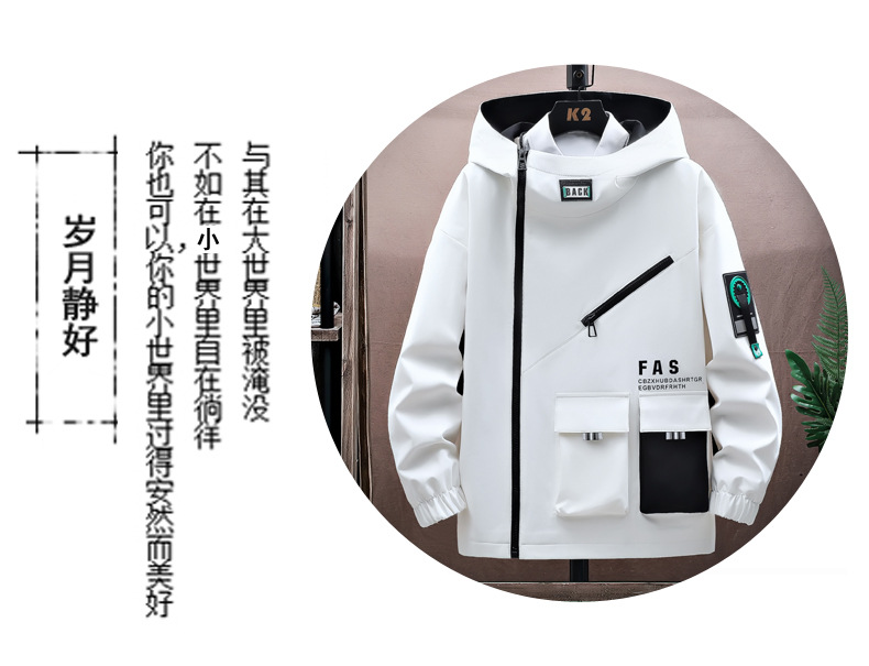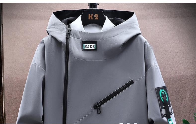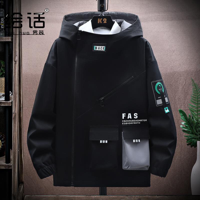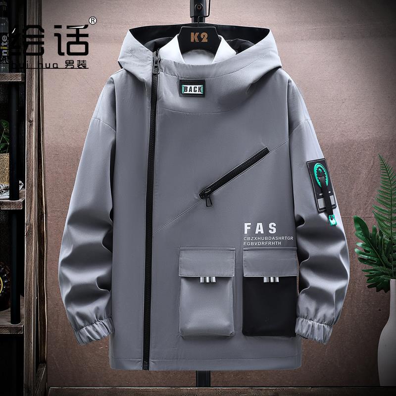 봄과 가을 청소년 작업 코트 트렌디 한 브랜드 중학교 학생 느슨한 충전 옷 멋진 잘 생긴 남성 후드 재킷