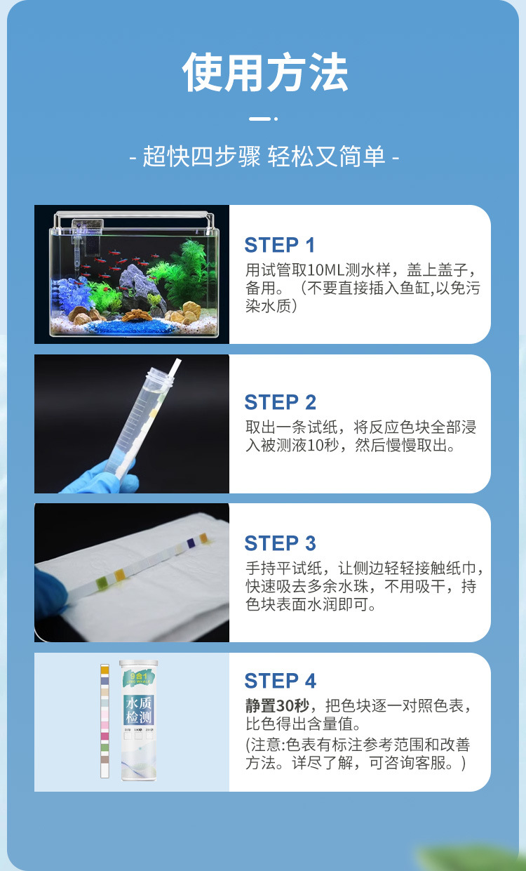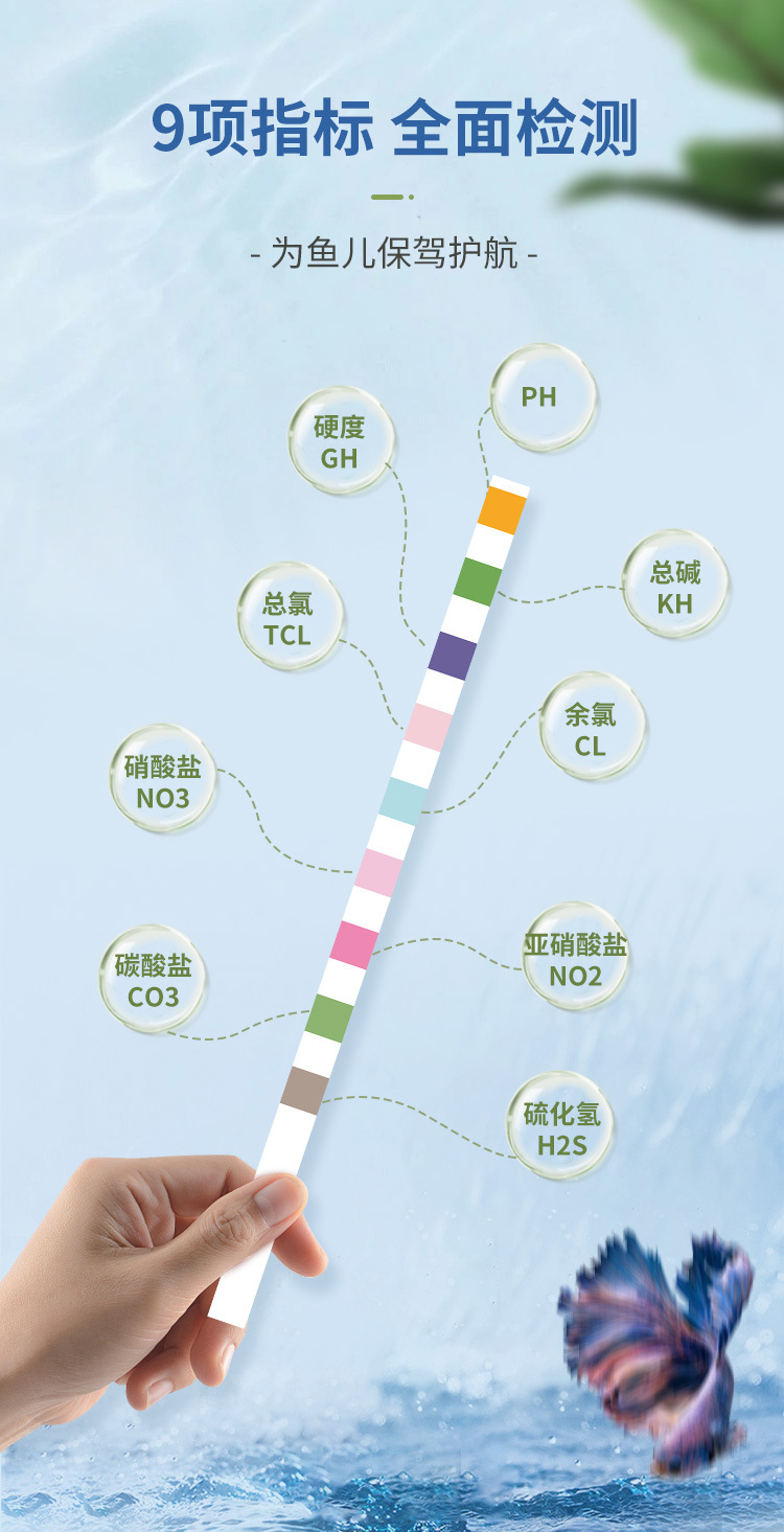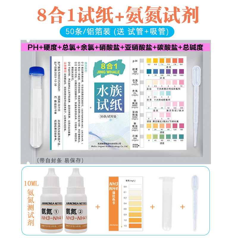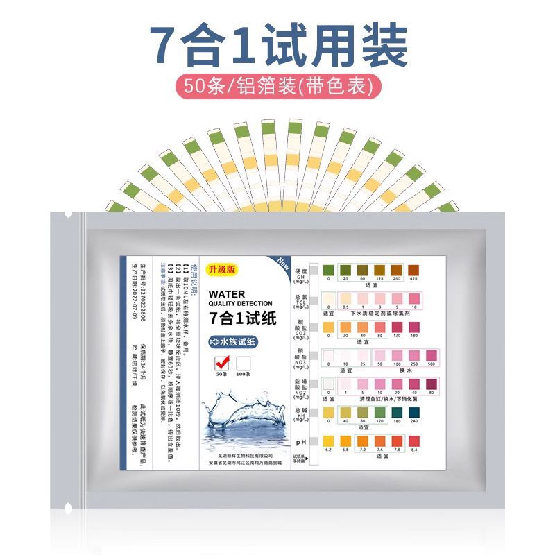 수족관 수질 시험지 7 in 1 수족관 pH 경도 아질산염 pH 잔류 염소 총 알칼리