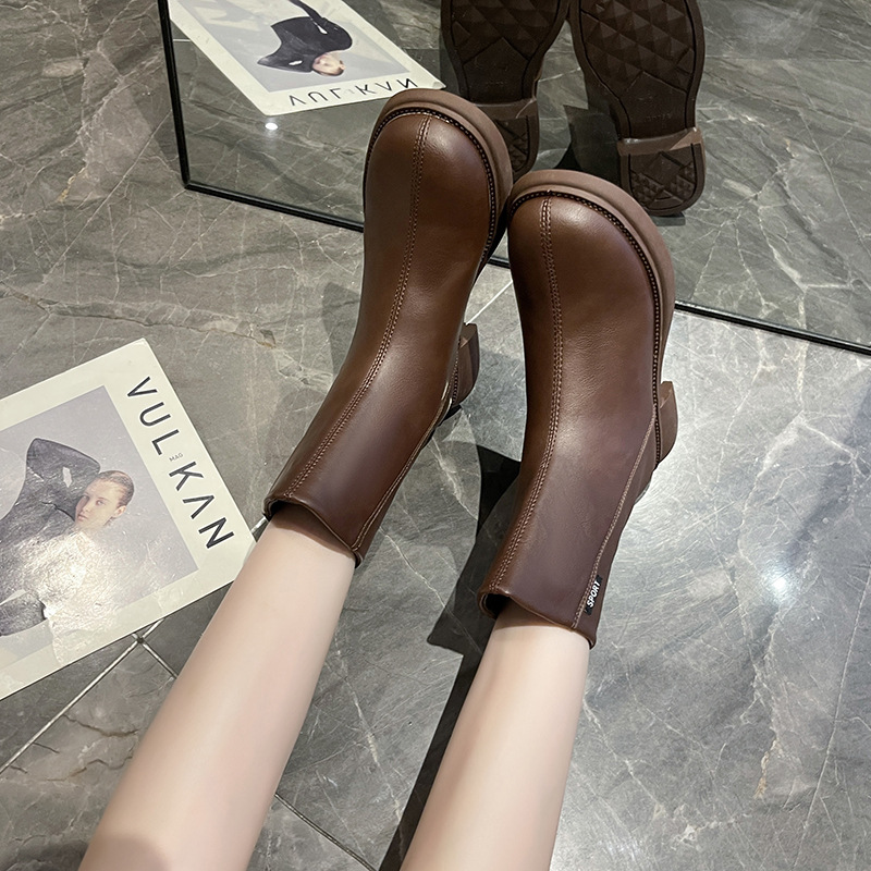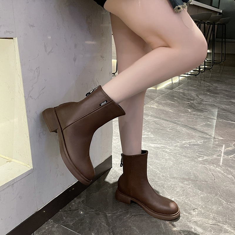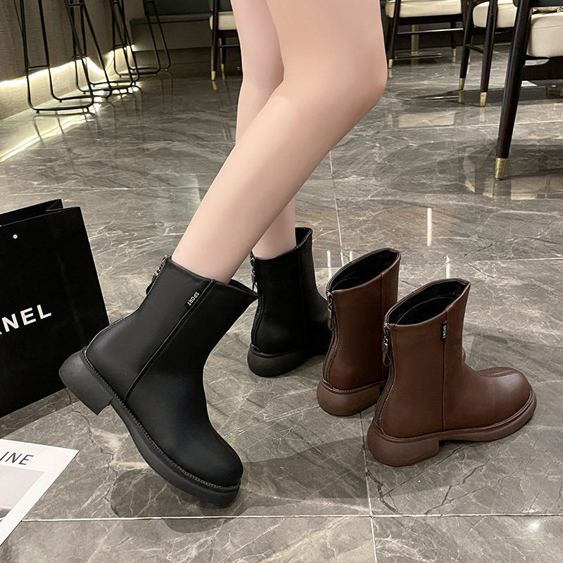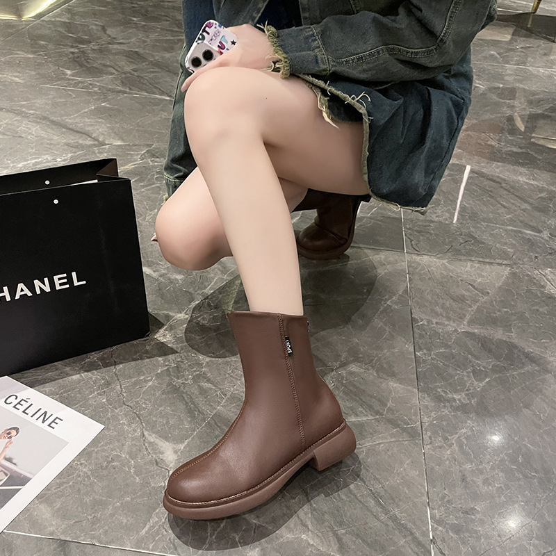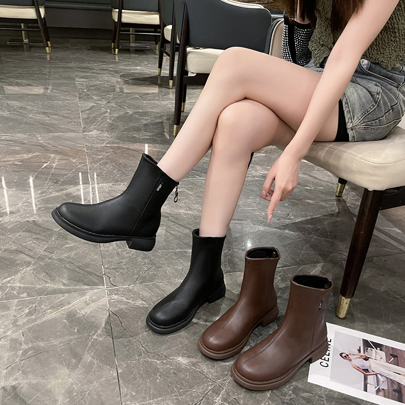 가을과 겨울 뉴 마틴 부츠 여성 패션 영국 빈티지 여성용 짧은 부츠 백 지퍼 라운드 헤드 모든 매치 마틴 부츠 여성 부츠 패션스토어 가기