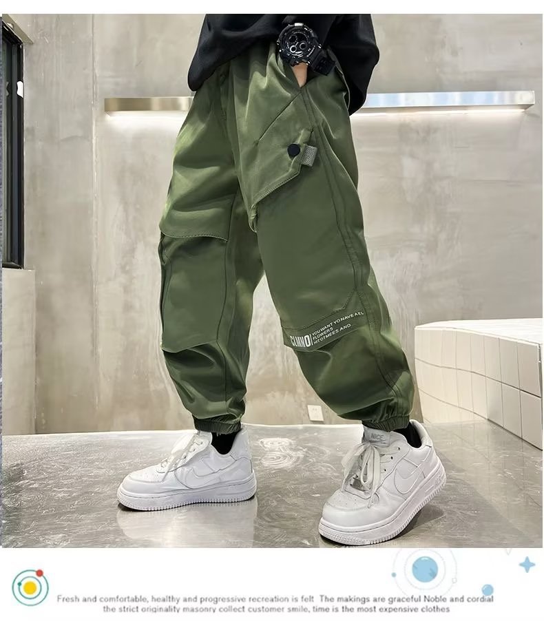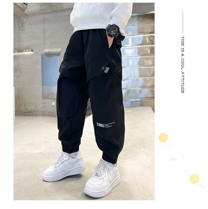 소년 봄, 가을 작업복 2025 새로운 중대형 어린이 바지 어린이 잘 생긴 소년 봄 의류 거리 캐주얼 바지 유행