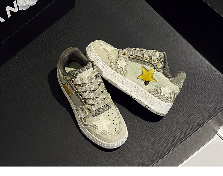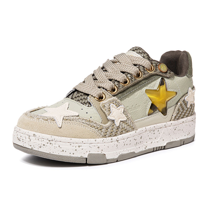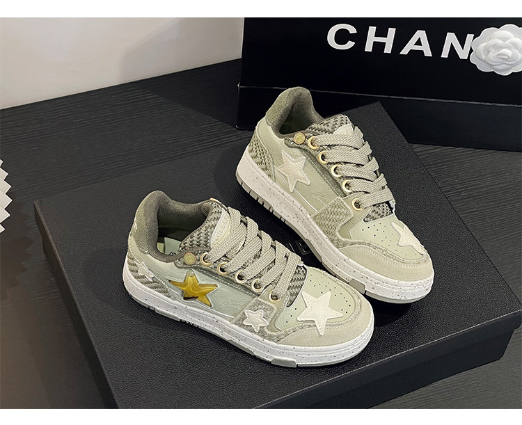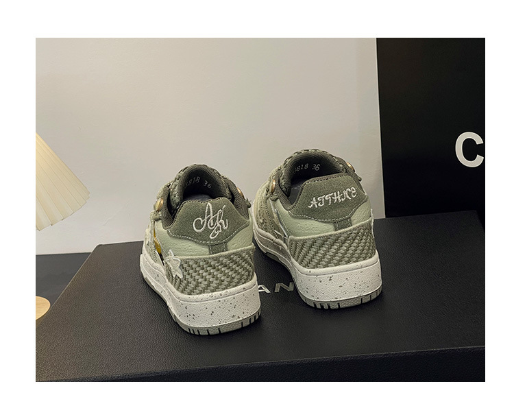 공동 웨스트 레이크 Longjing 차 그린 스타 신발 남성과 여성을위한 틈새 디자인 두꺼운 바닥 국가 패션 캐주얼 커플 스케이트 신발스토어 가기