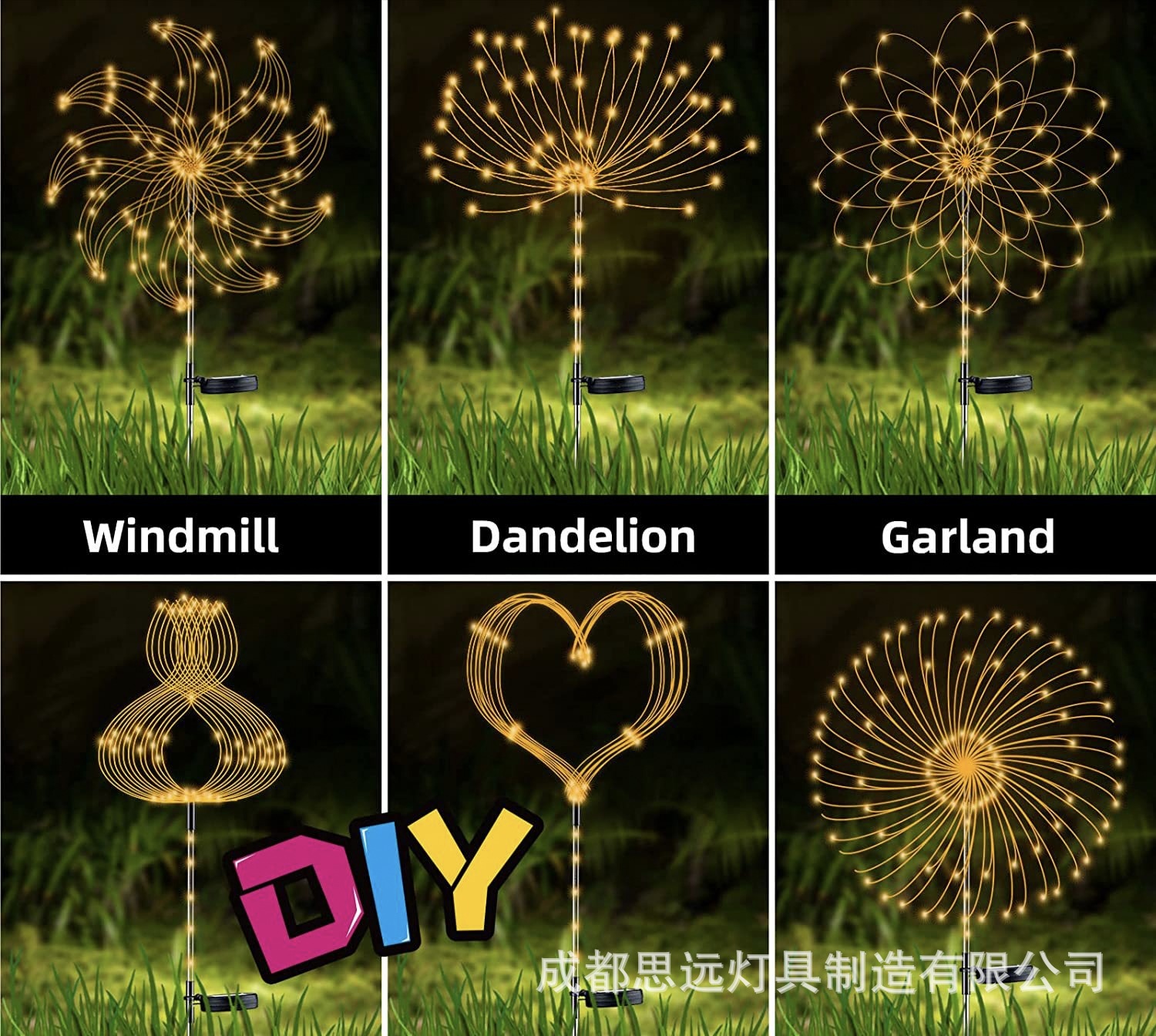 태양 에너지 심은 연기 조명 민들레 조명 야외 방수 다채로운 조명 잔디 안뜰 정원 장식 분위기 조명
