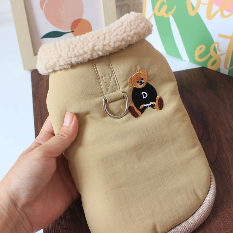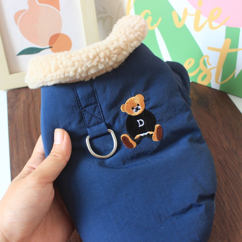 INS 애완 동물 고양이 개 두꺼운 따뜻한 곰 자수 모피 칼라 재킷 개 옷 테디 겨울 코트