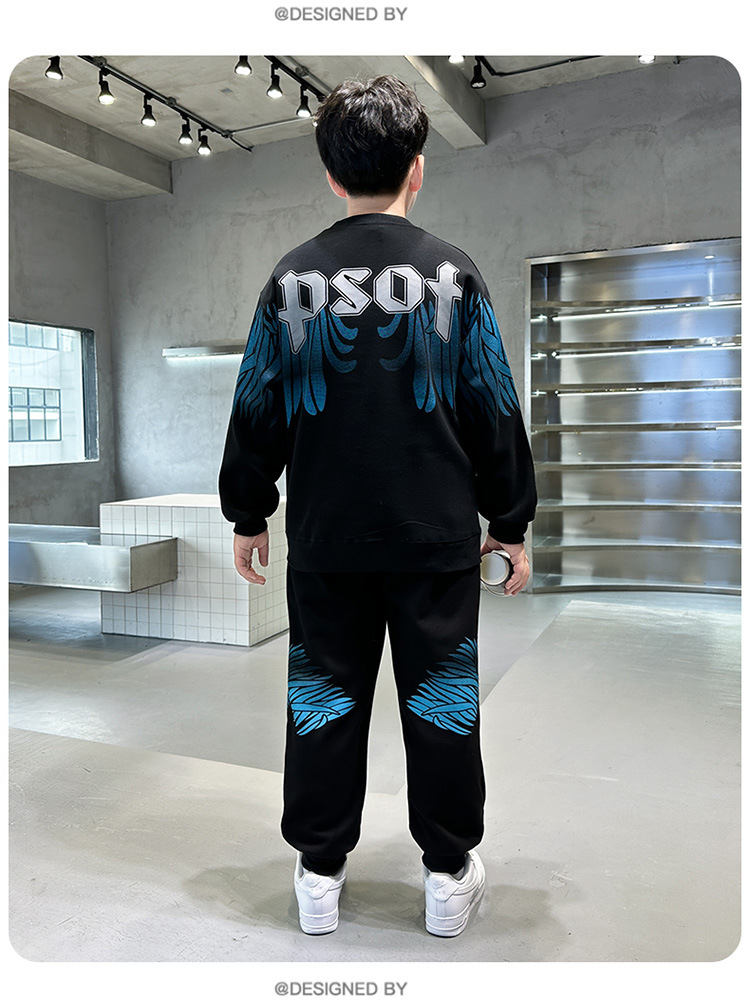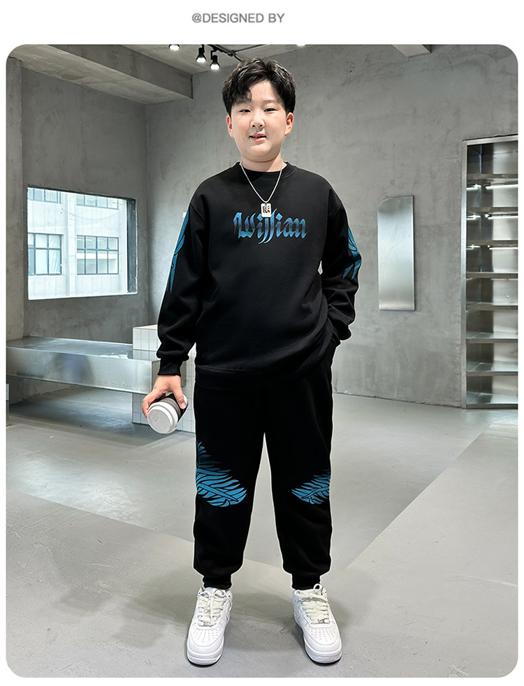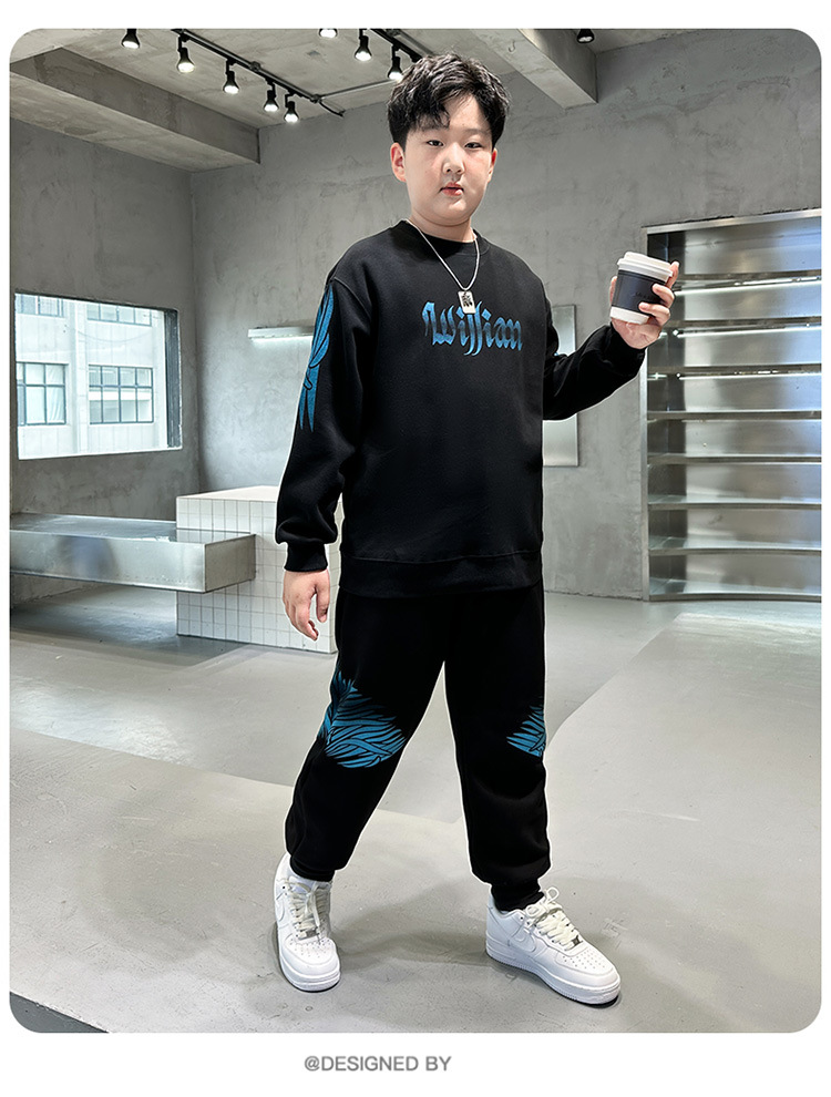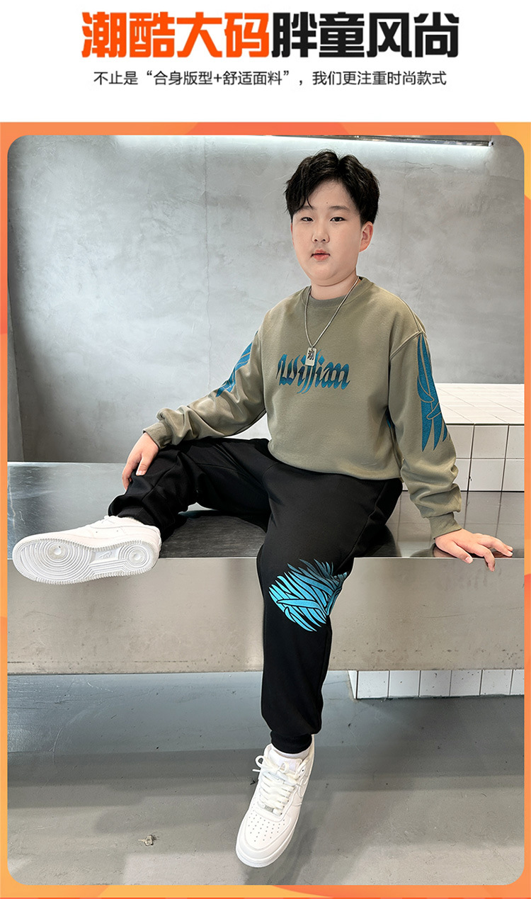 뚱뚱한 소년 스웨터 봄과 가을 새로운 플러스 사이즈 어린이 한국 스타일 느슨한 미디어와 큰 아이들 잘 생긴 풀오버 긴 소매 T