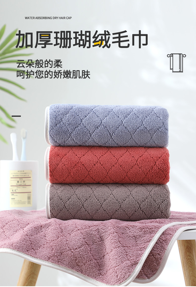 도매 즉시 출고 산호 벨벳 타월 두꺼운 가정용 부드럽고 흡수력 좋은 보풀 없는 세안 타월 성인용 손 닦는 타월