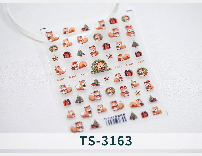 TENSOR 일본식 5D 꽃 네일 스티커 프로 젖빛 얇은 투명 접착 얇은 터프 스티커 TS-3162 크리스마스 다람쥐