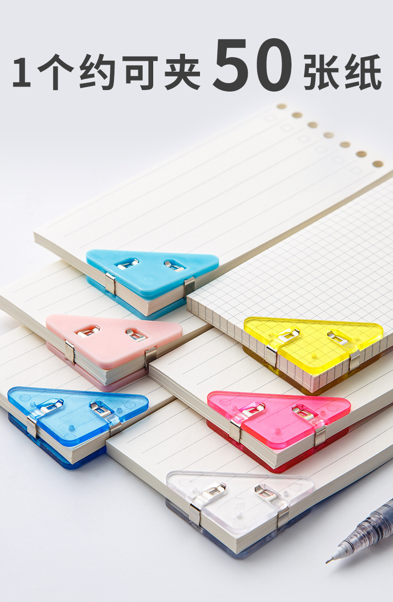 컬러 파일 삼각형 클립 간단 투명 책 옆 코너 클립 학생 시험 종이 클립 사무실 데이터 저장 클립스토어 가기