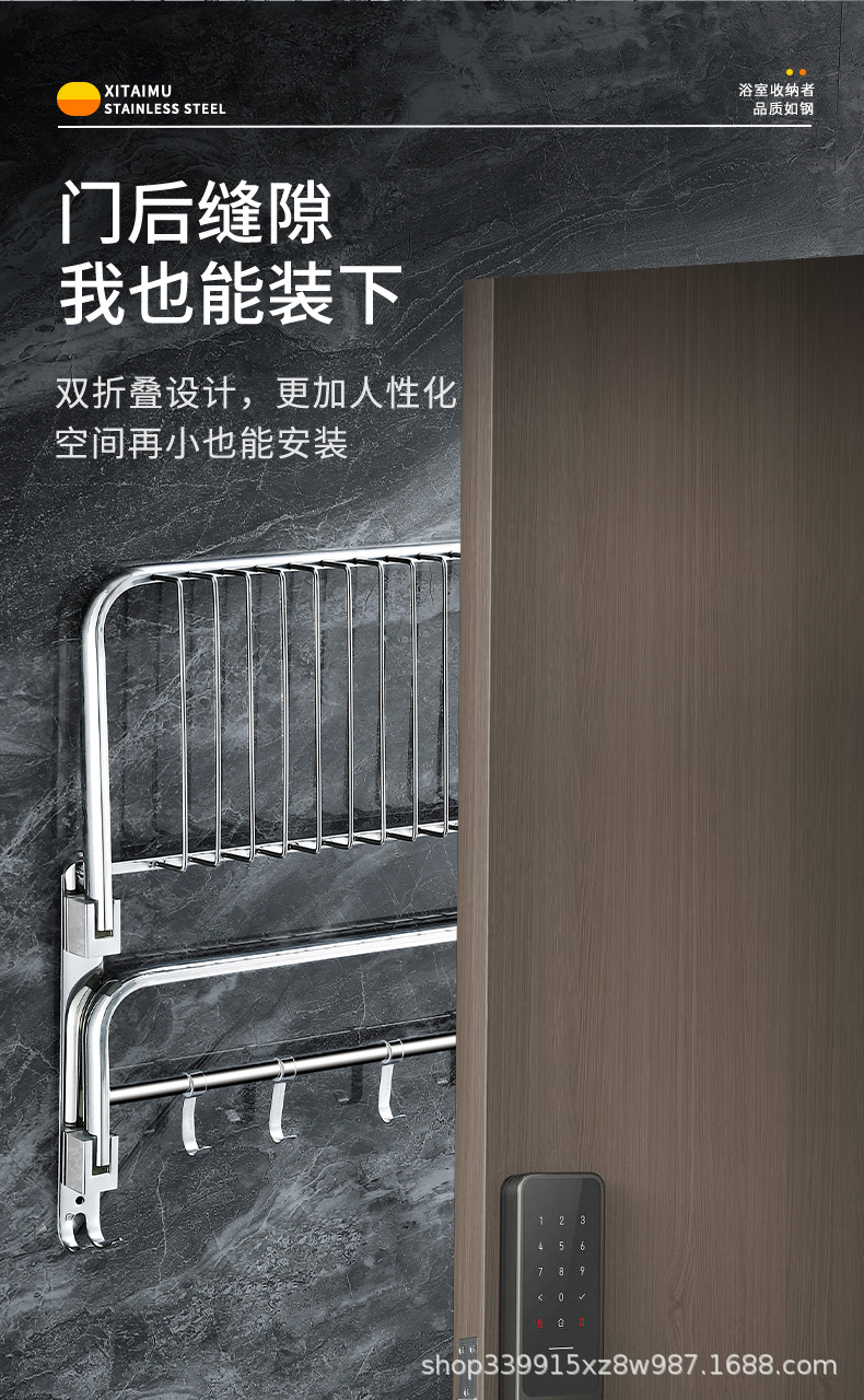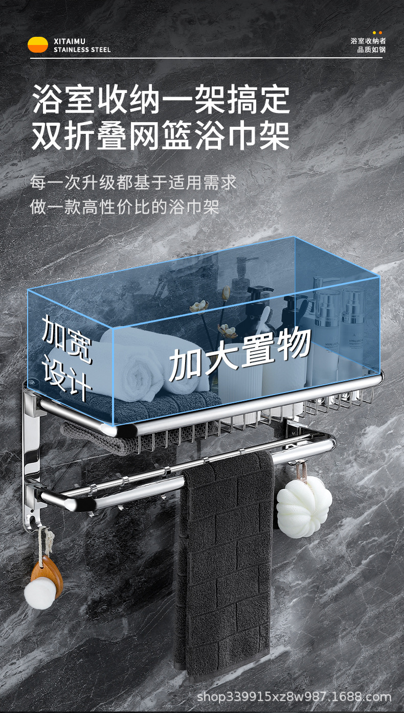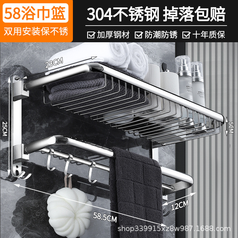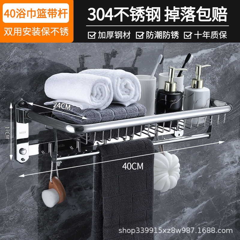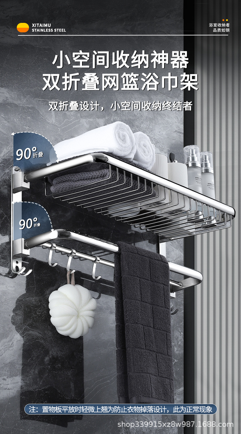 욕실 수건 랙 펀치 프리 304 스테인레스 스틸 욕실 접이식 메쉬 바구니 보관 랙 벽 교수형 옷 보관 랙