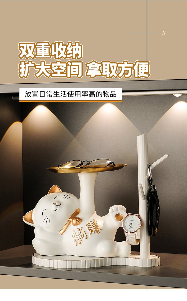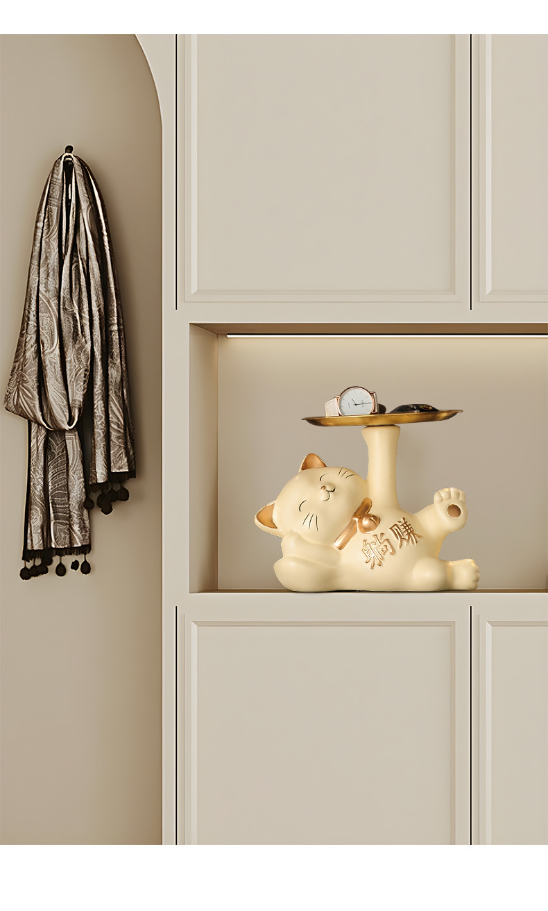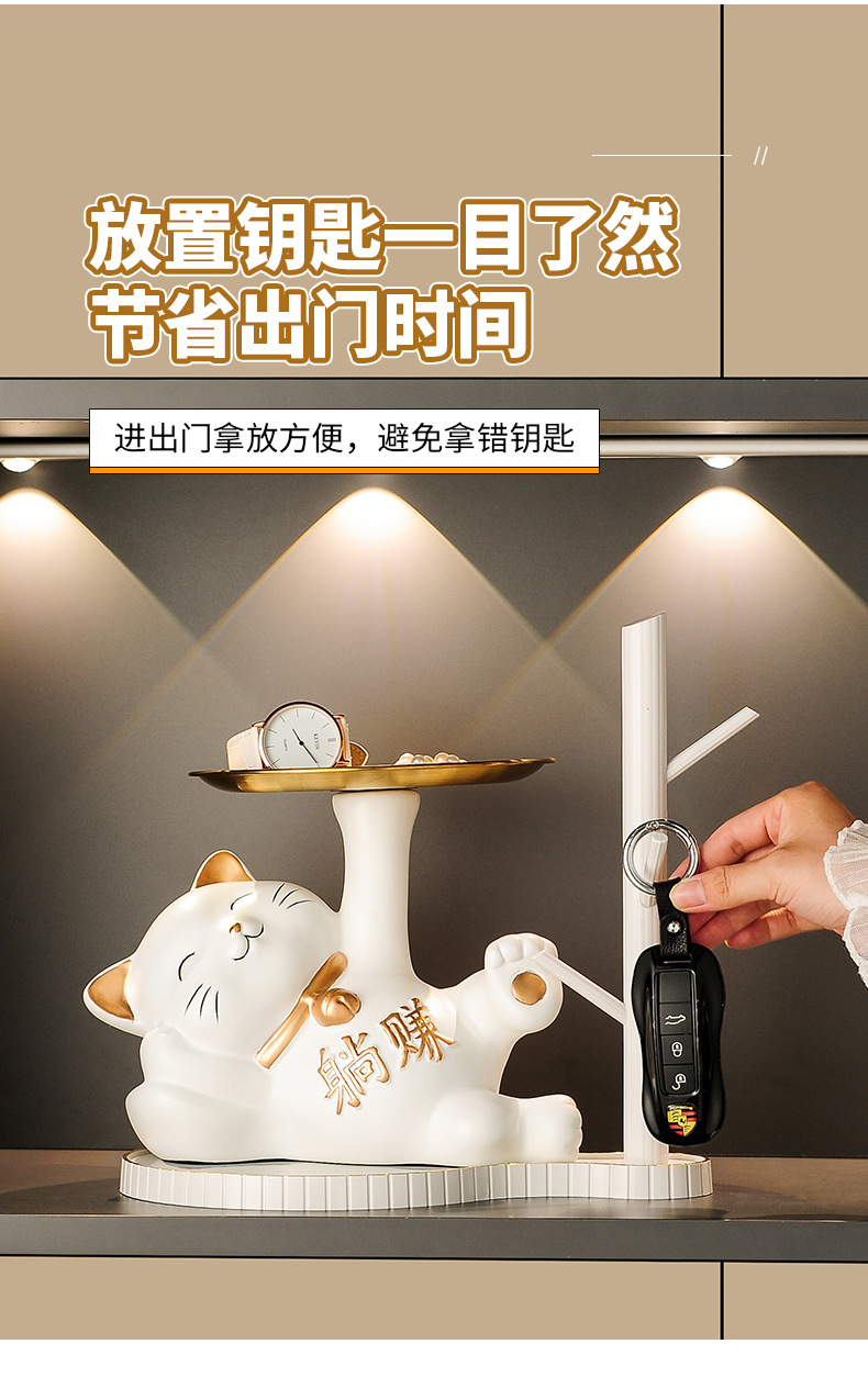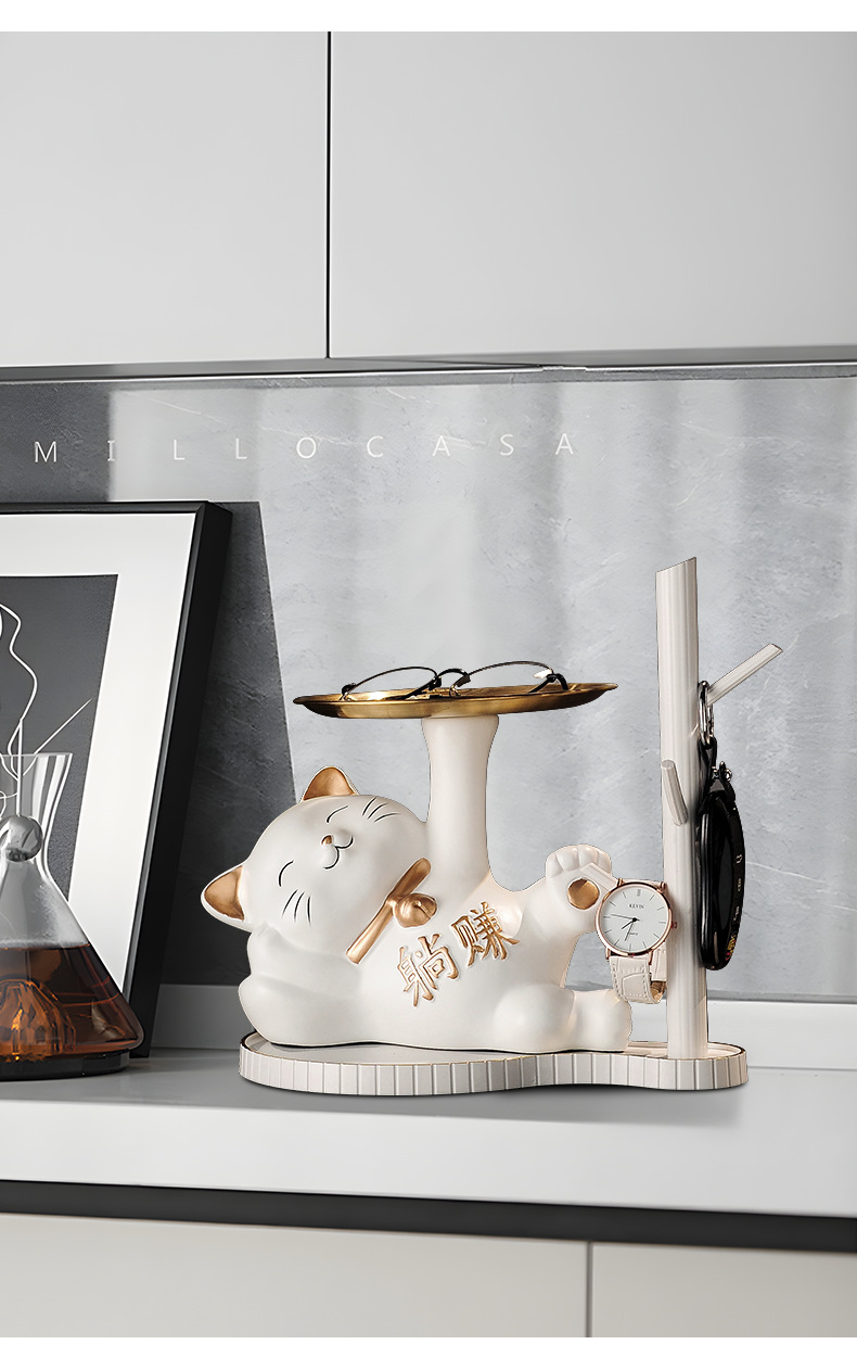 열쇠 보관 현관 장식품 신발장 가정용 행운의 고양이 장식품 집들이 선물 도자기 백자