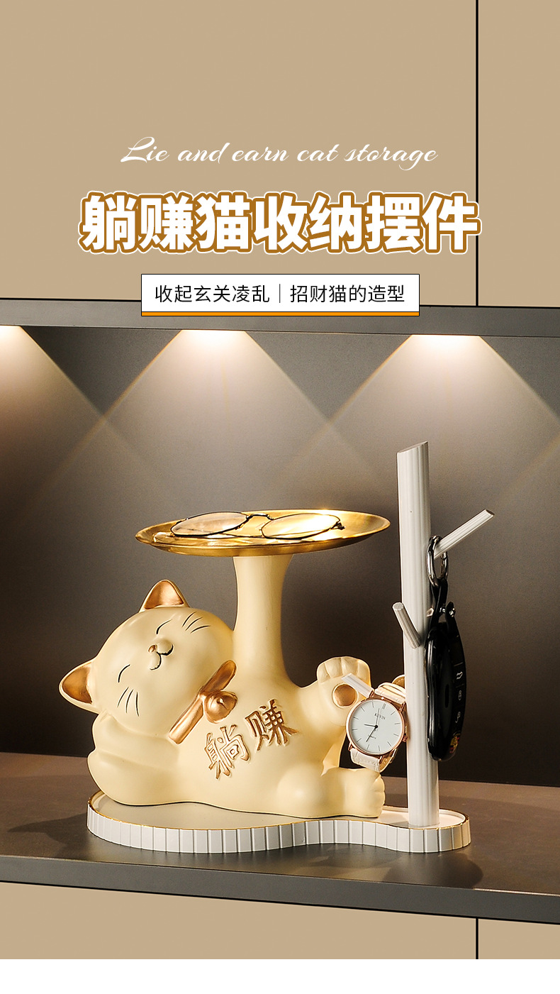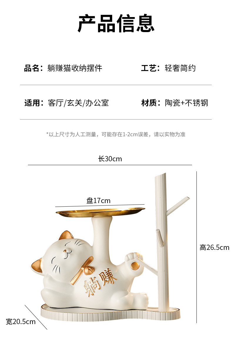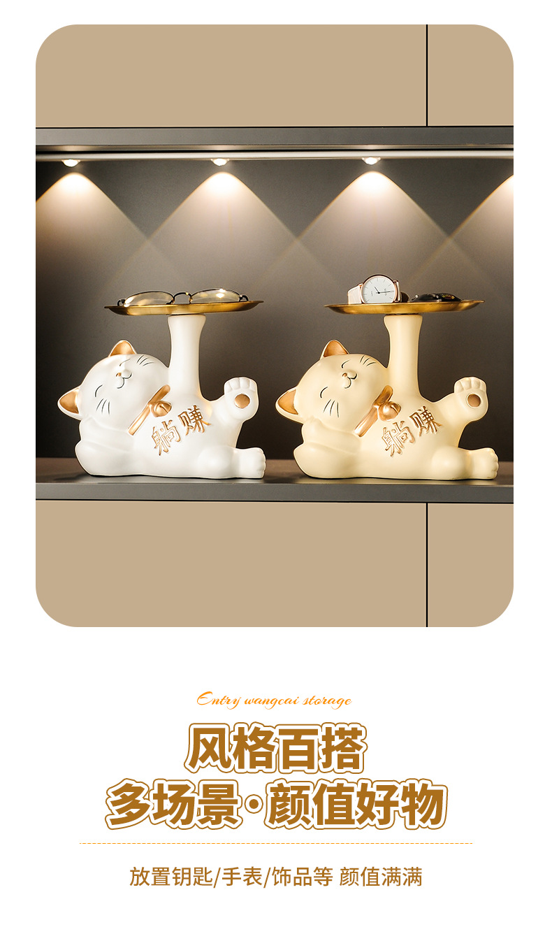 열쇠 보관 현관 장식품 신발장 가정용 행운의 고양이 장식품 집들이 선물 도자기 백자