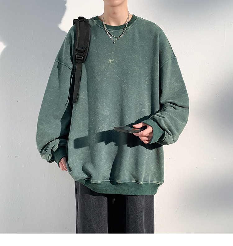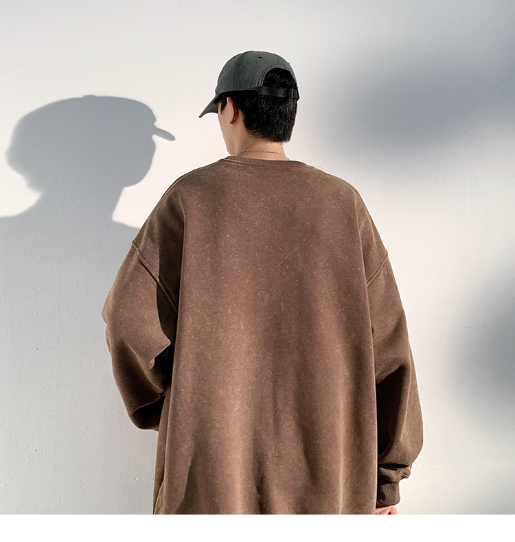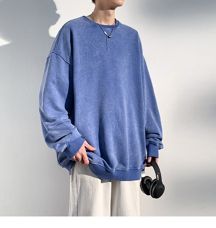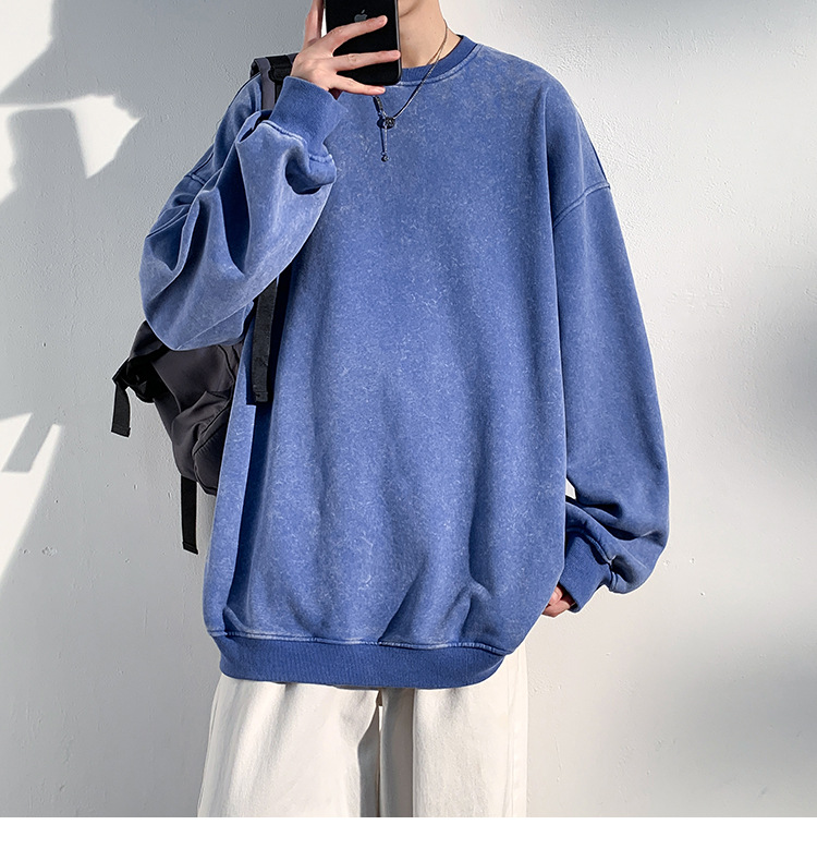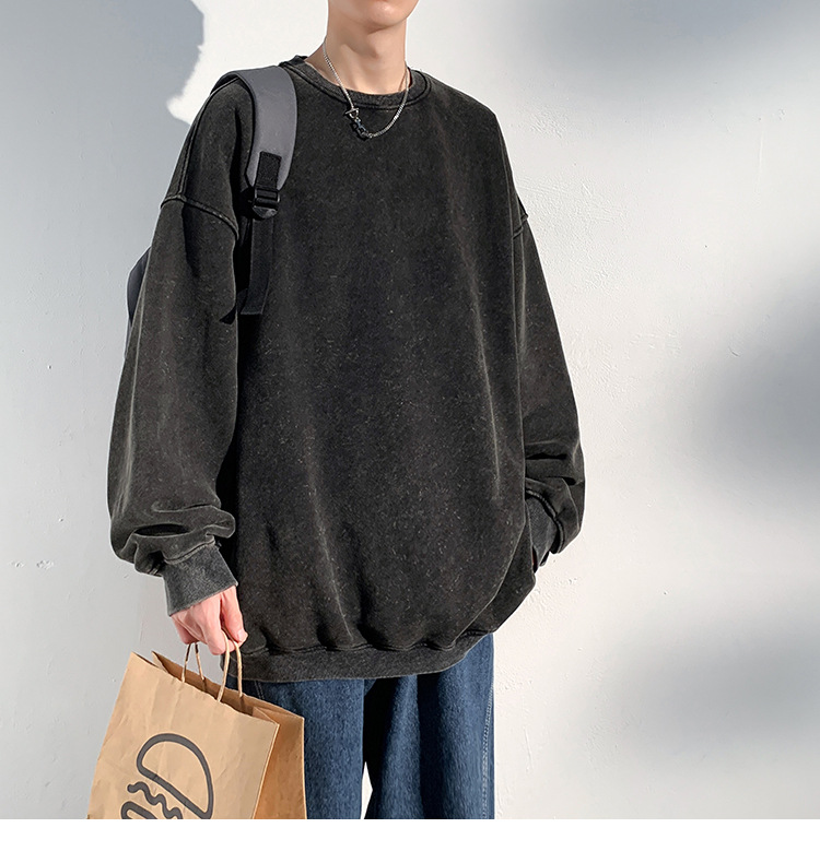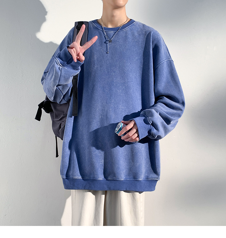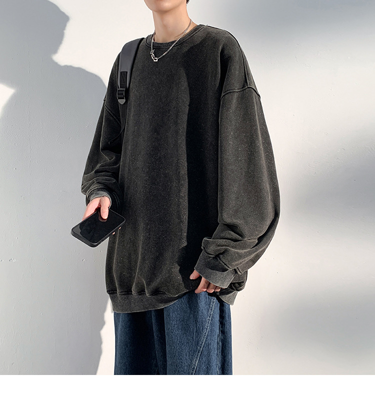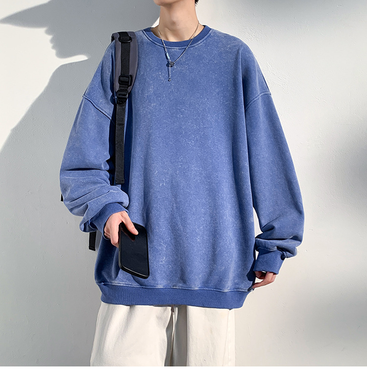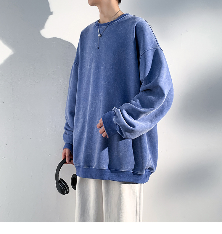 2023 새로운 가을 패션 플러스 사이즈 씻어 느슨한 오래 된 크루넥 스웨터 남자의 스웨터스토어 가기