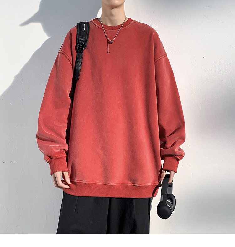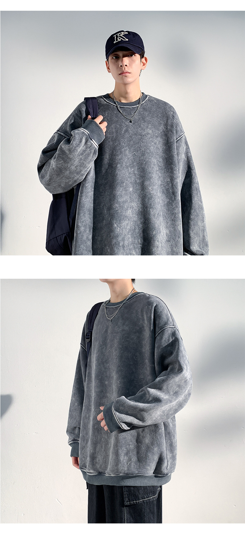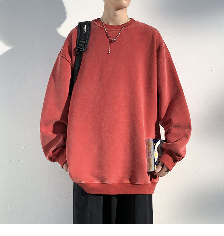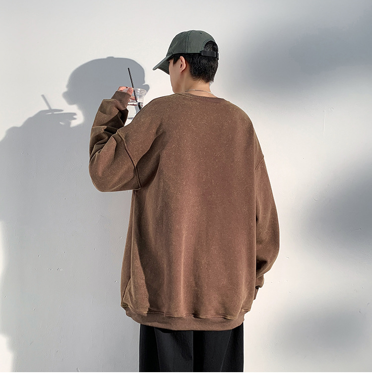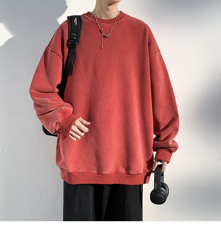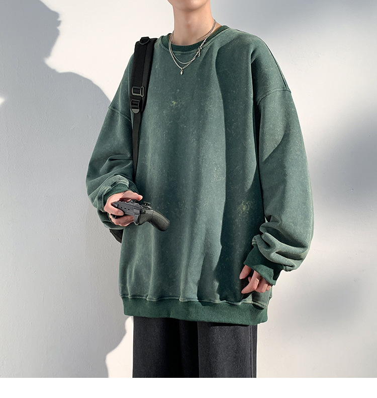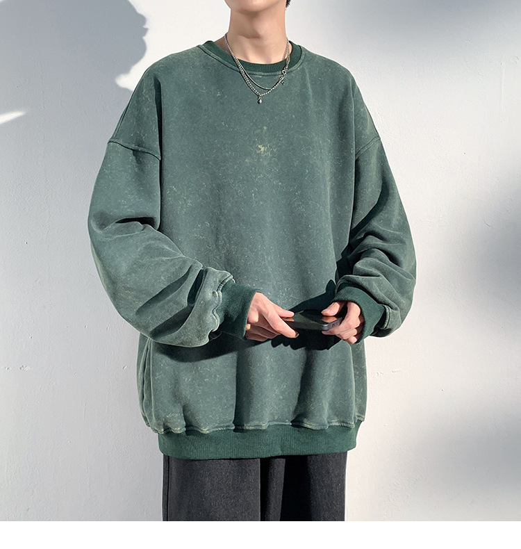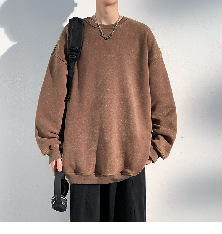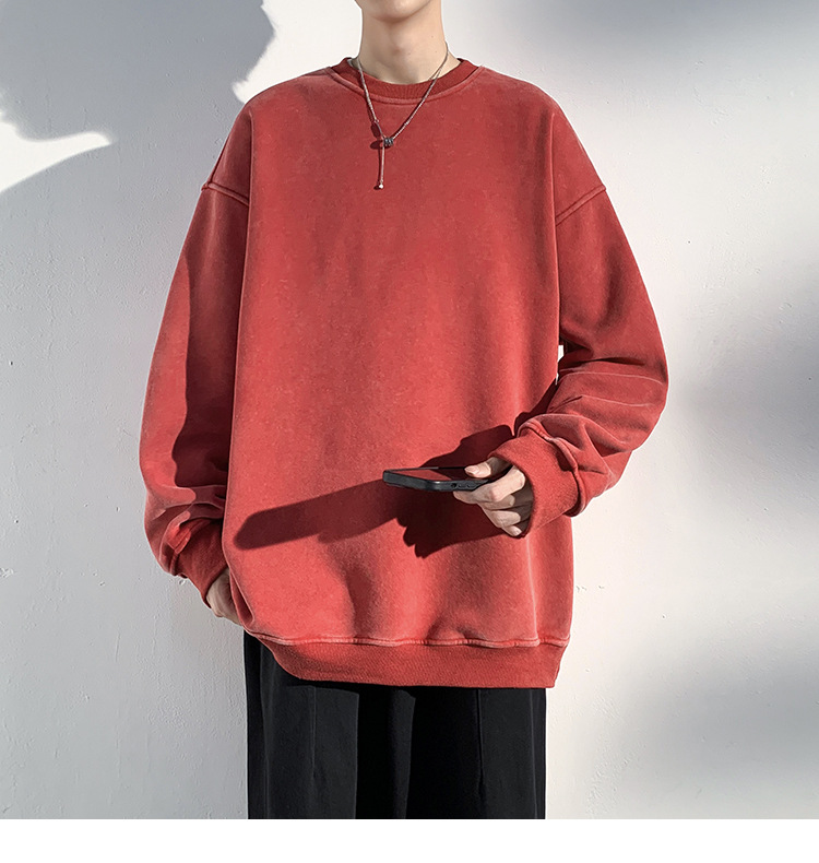 2023 새로운 가을 패션 플러스 사이즈 씻어 느슨한 오래 된 크루넥 스웨터 남자의 스웨터스토어 가기