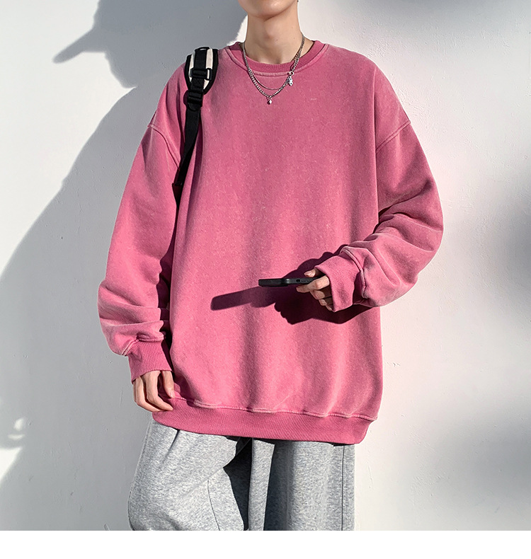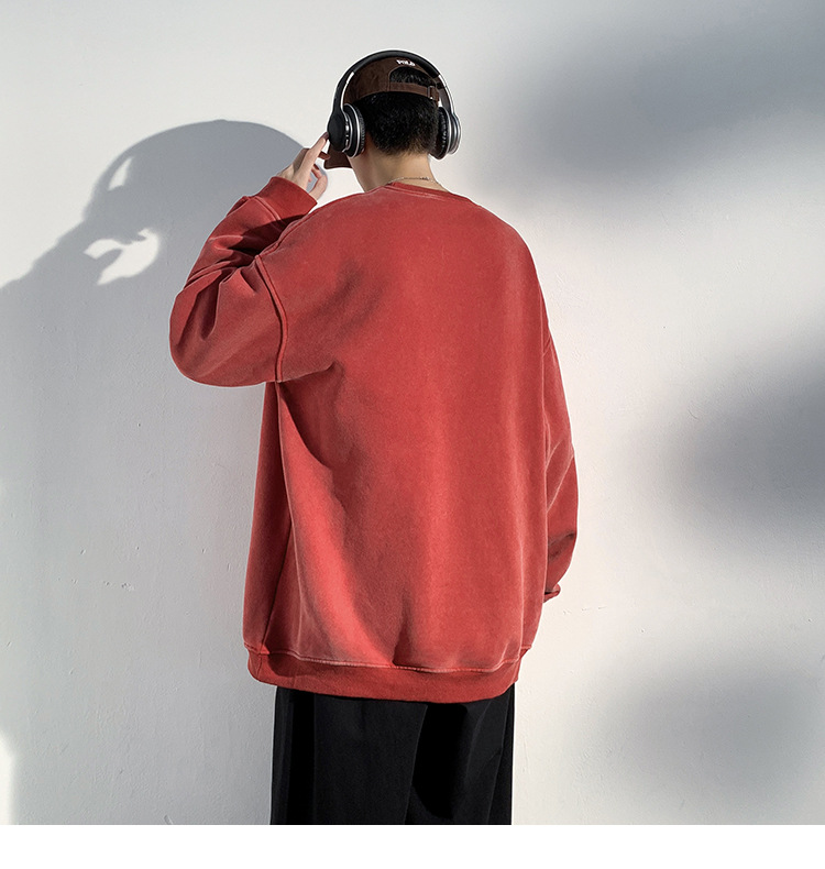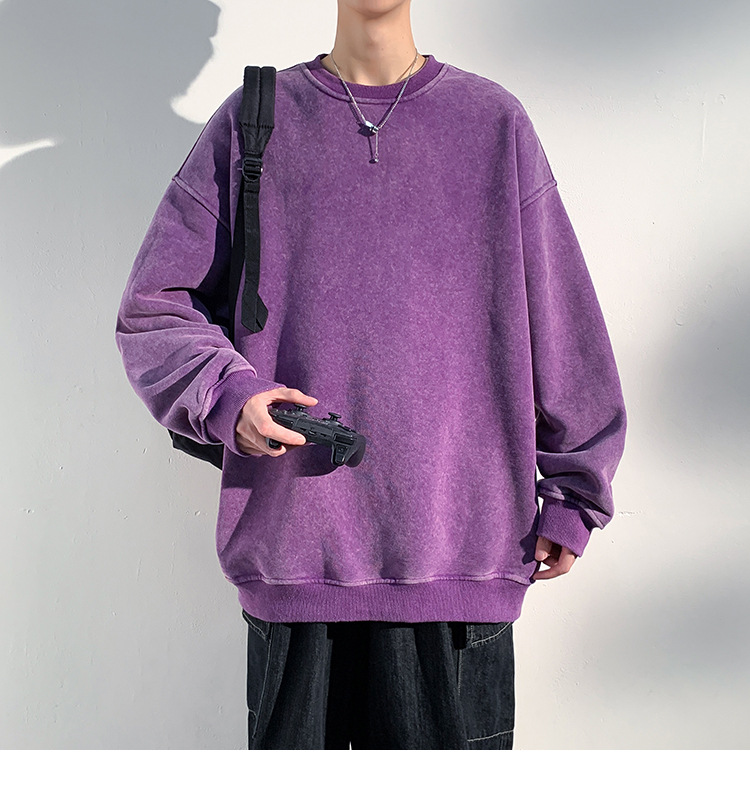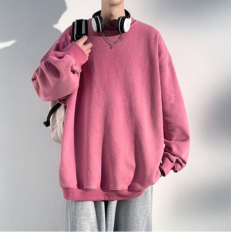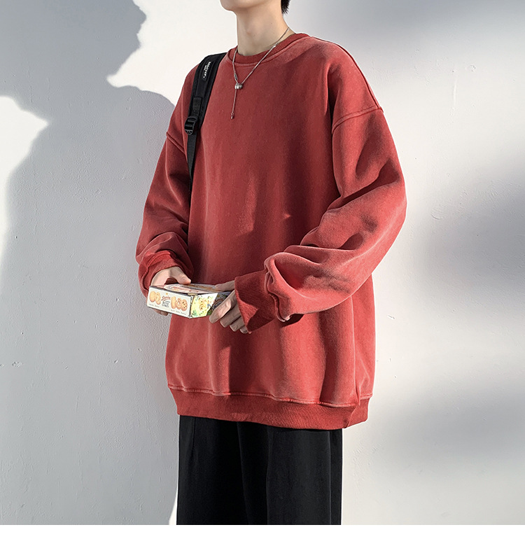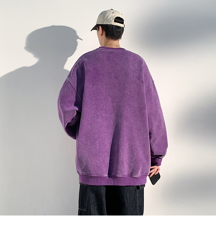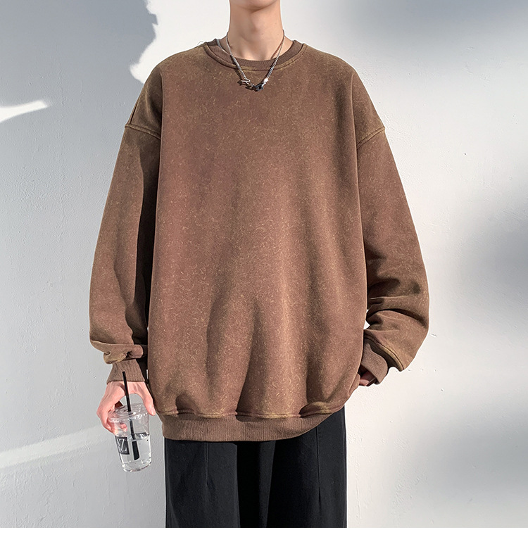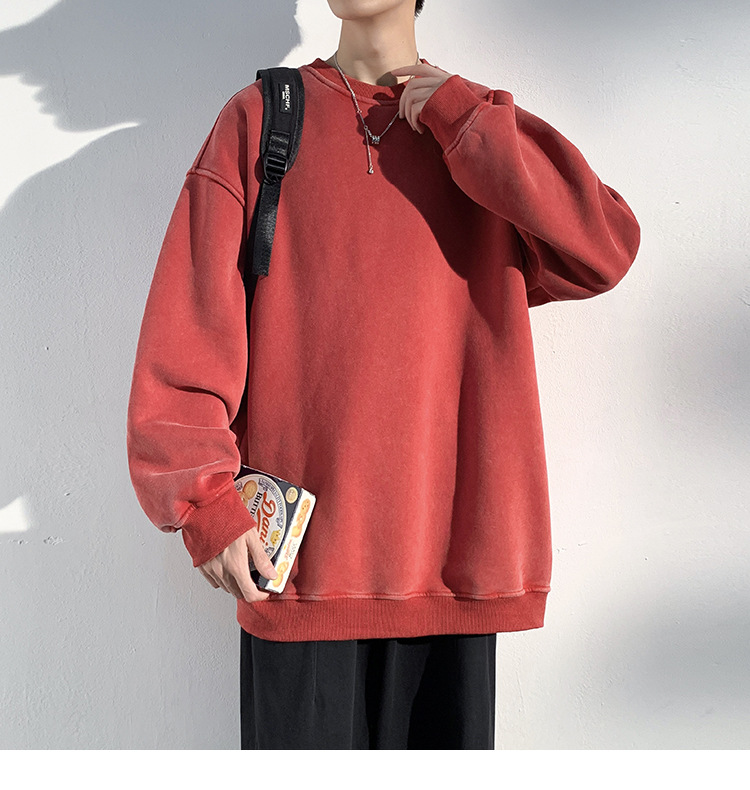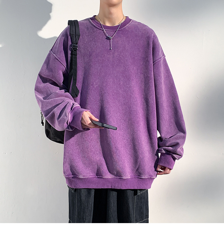 2023 새로운 가을 패션 플러스 사이즈 씻어 느슨한 오래 된 크루넥 스웨터 남자의 스웨터스토어 가기