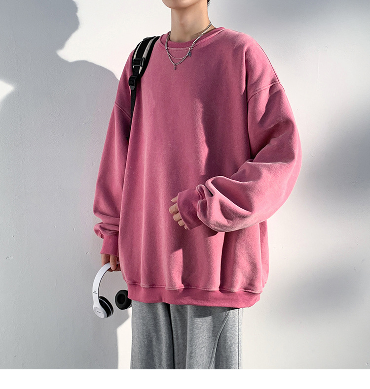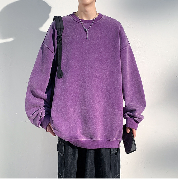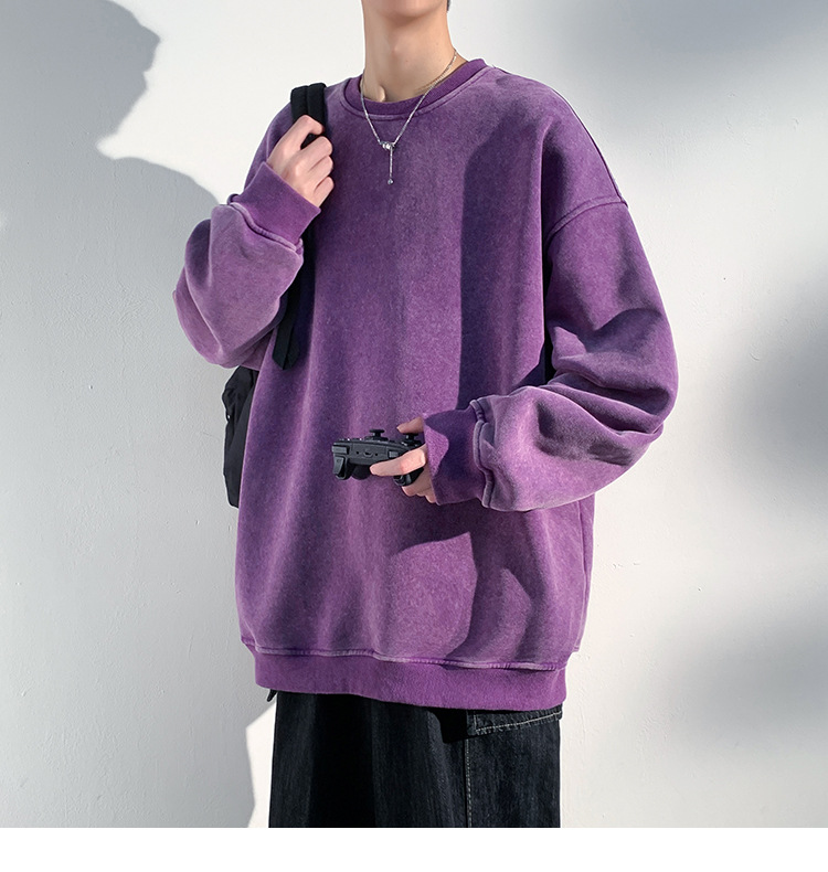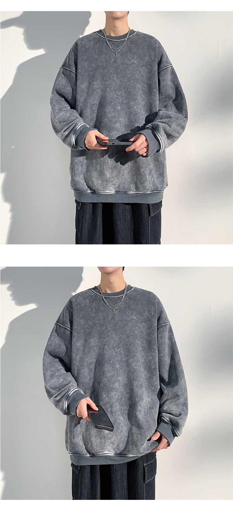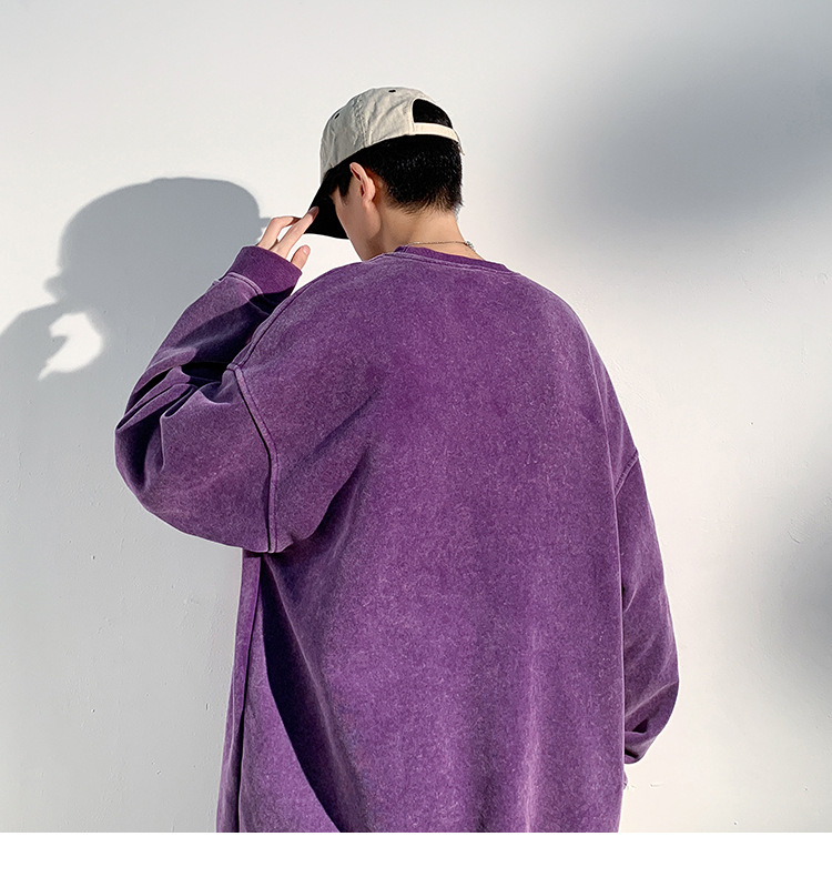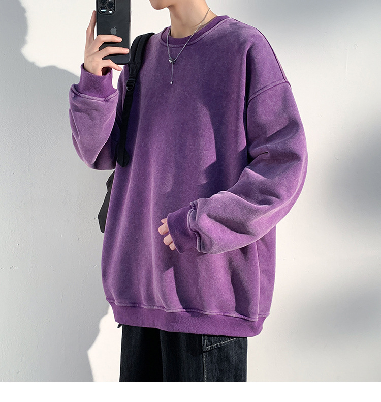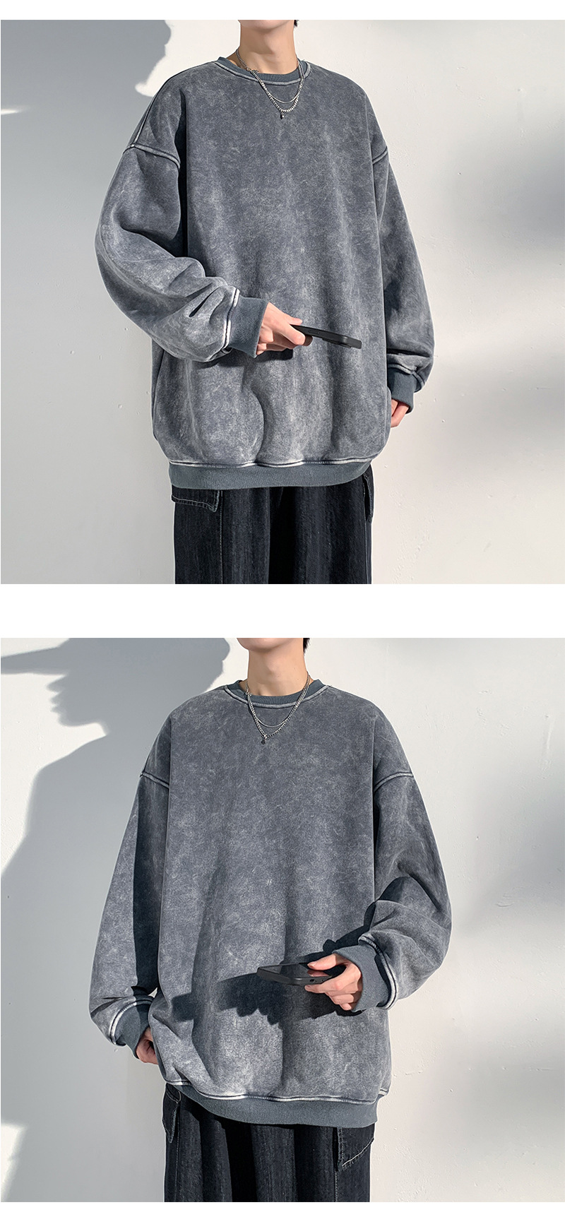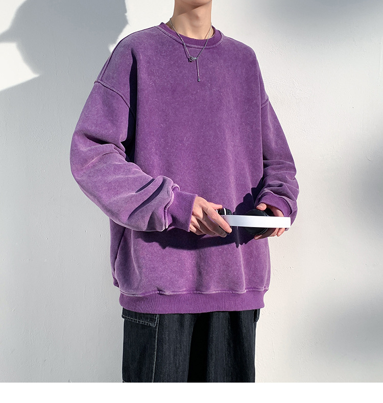 2023 새로운 가을 패션 플러스 사이즈 씻어 느슨한 오래 된 크루넥 스웨터 남자의 스웨터스토어 가기