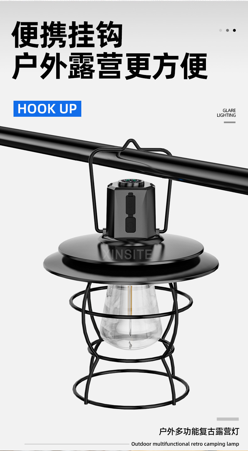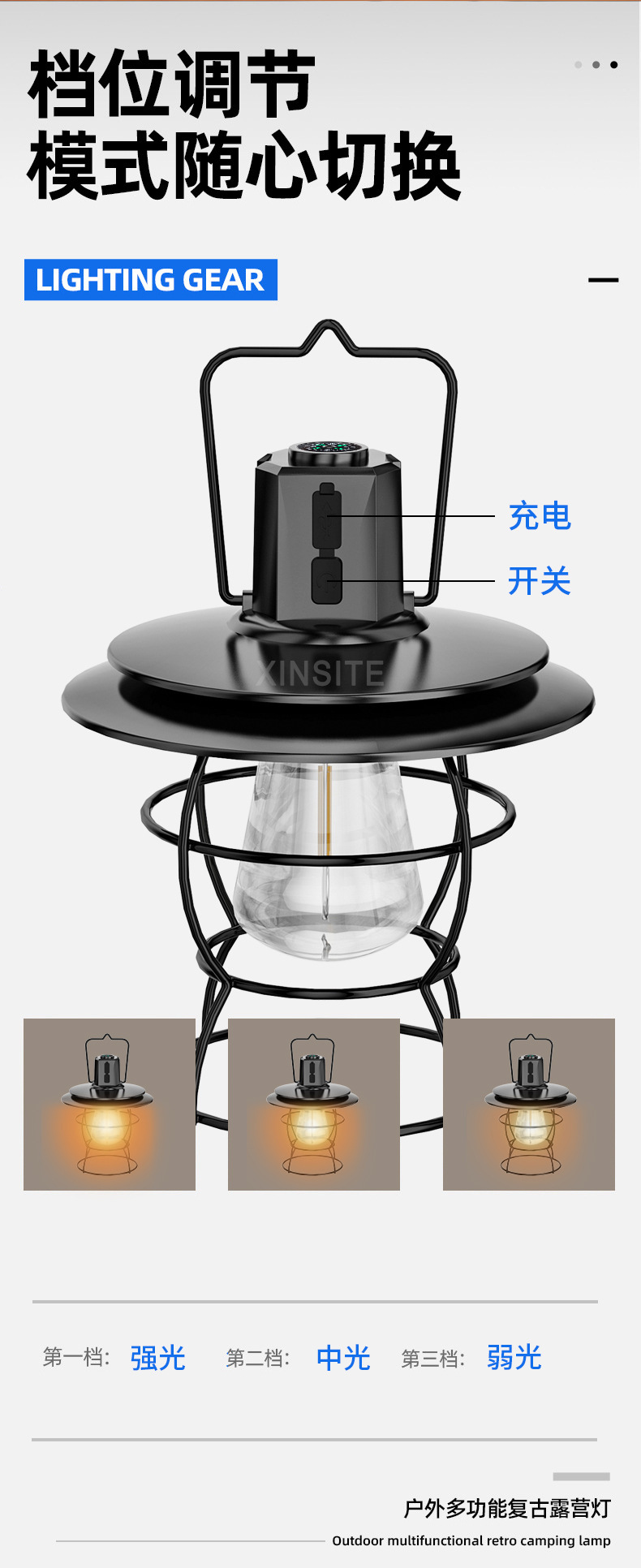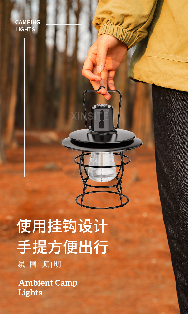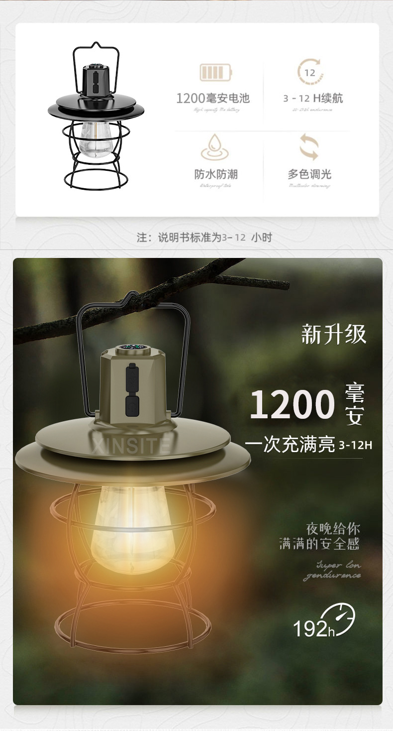 새로운 야외 복고풍 캠핑 램프 캠핑 램프 충전식 휴대용 랜턴 다기능 비상 조명 캠프 램프