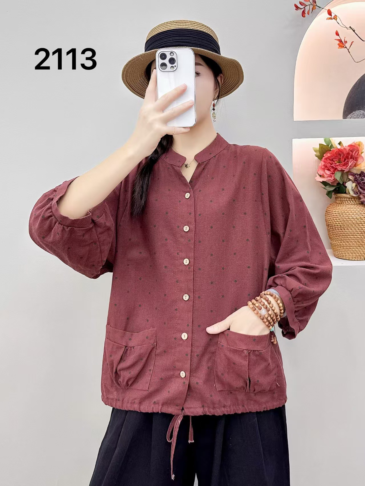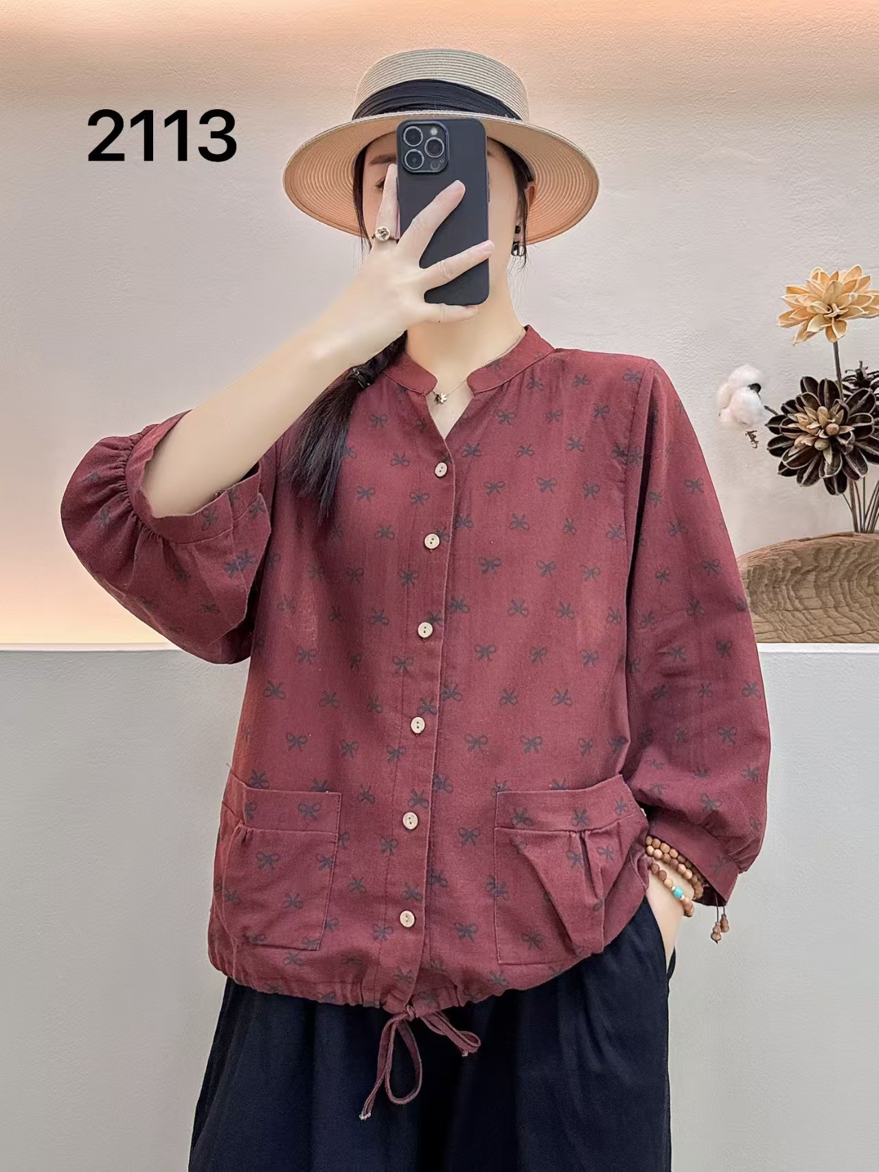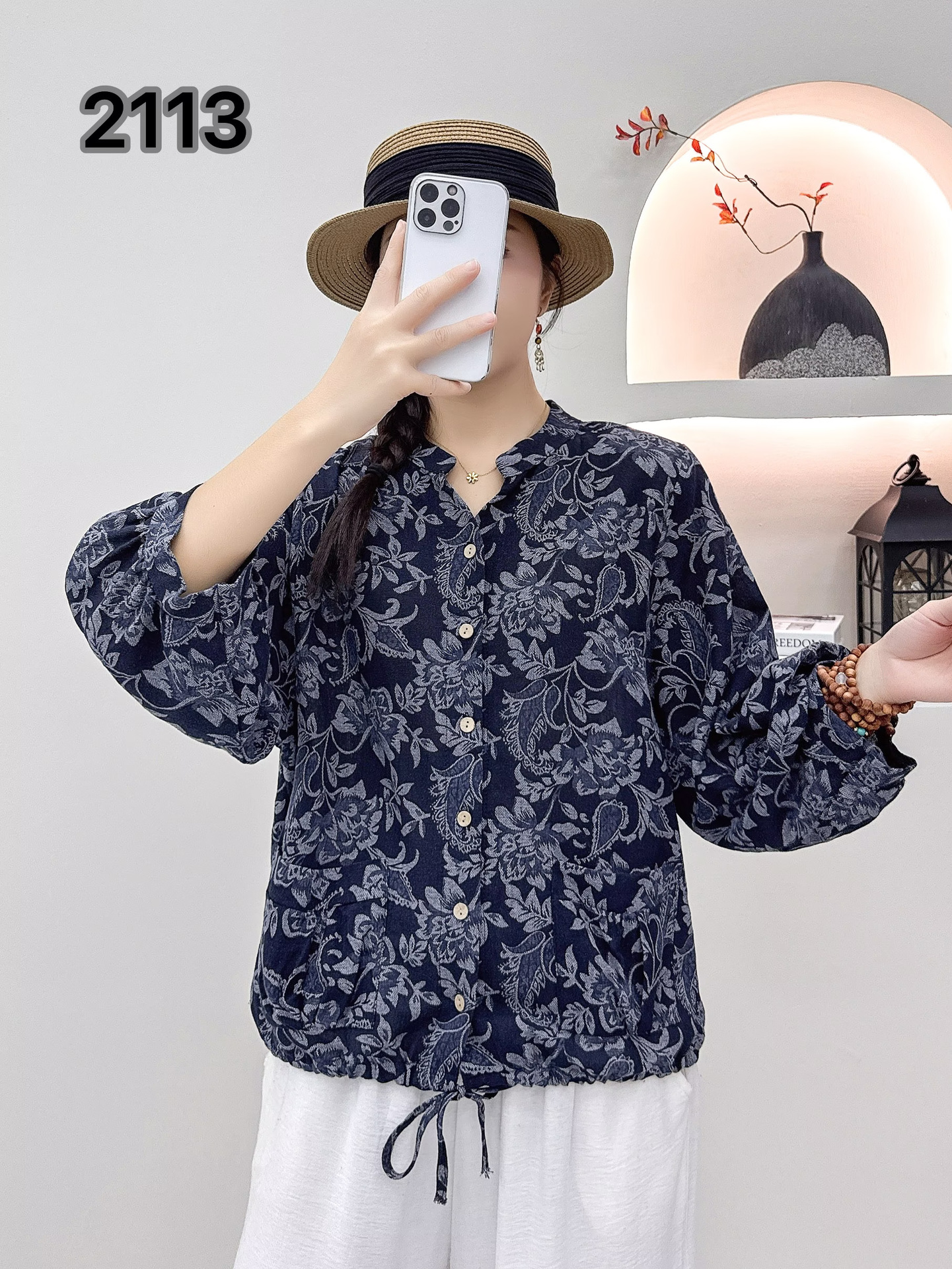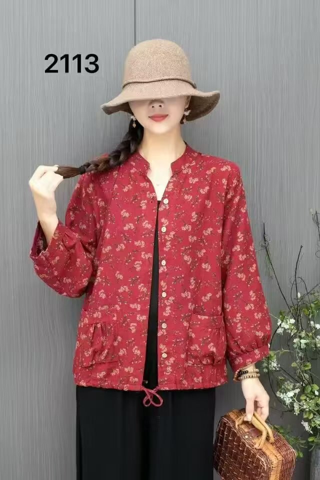 秋季新款水洗棉麻衬衫外套女宽松大码文艺复古中国风女式印花开衫 RMB:27.00