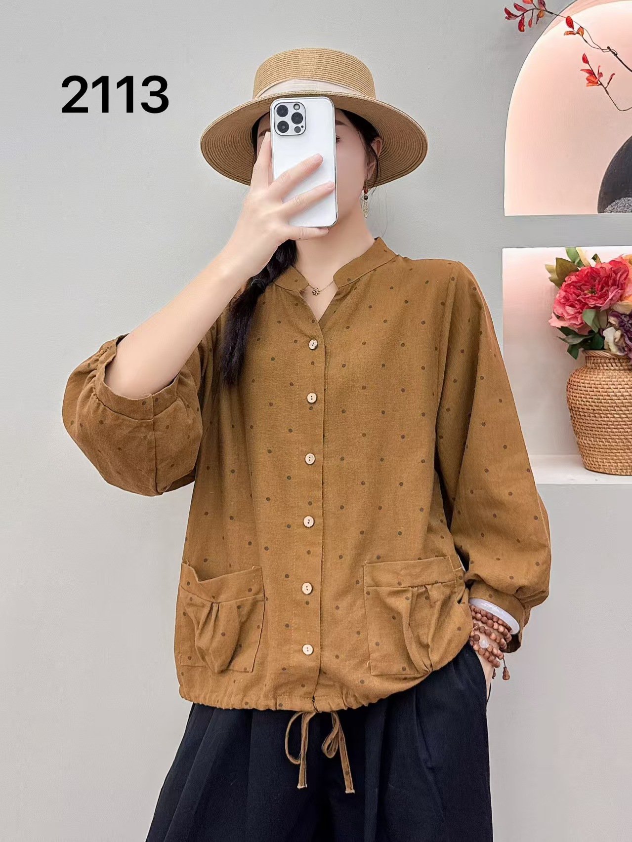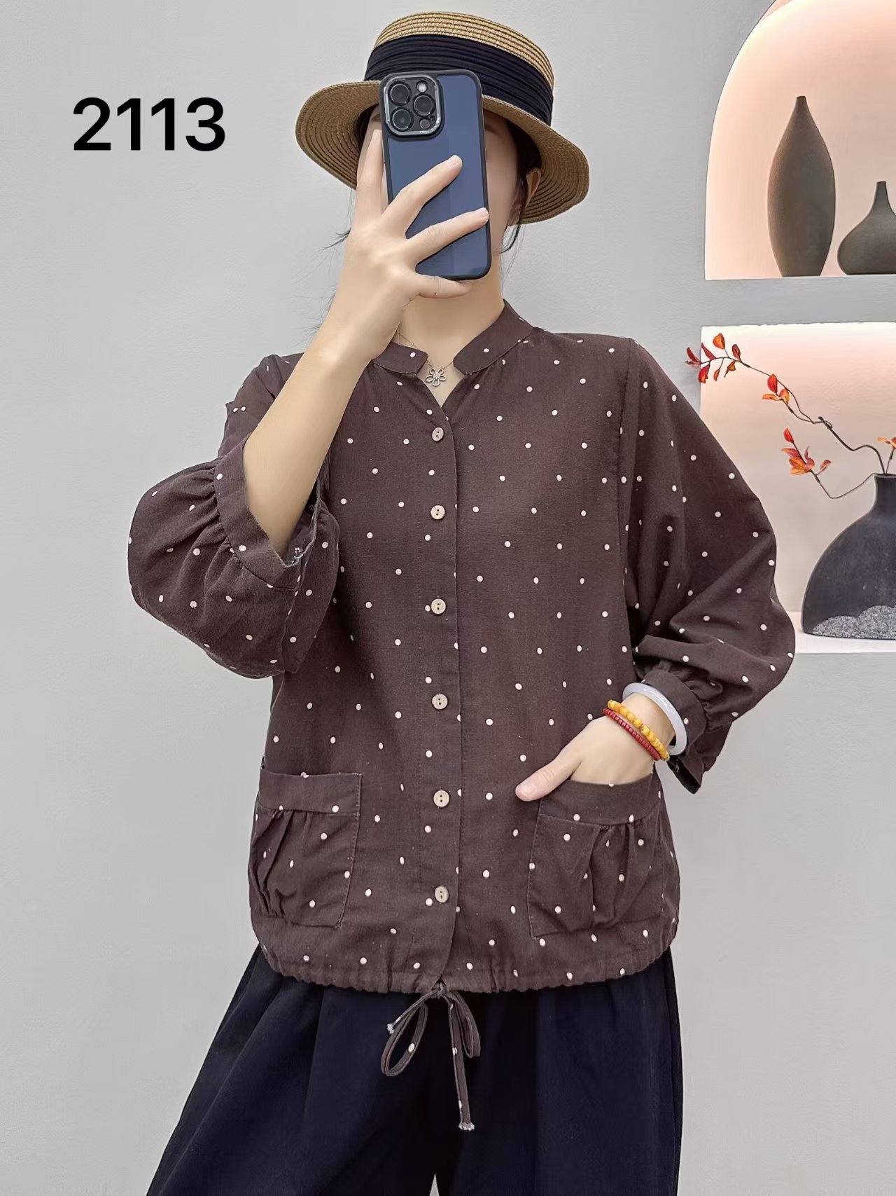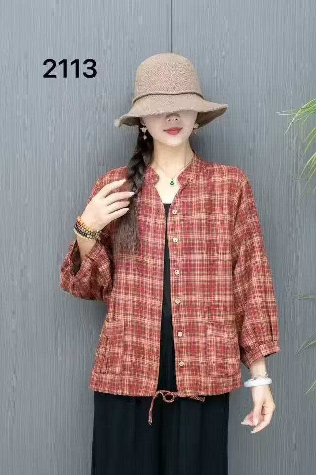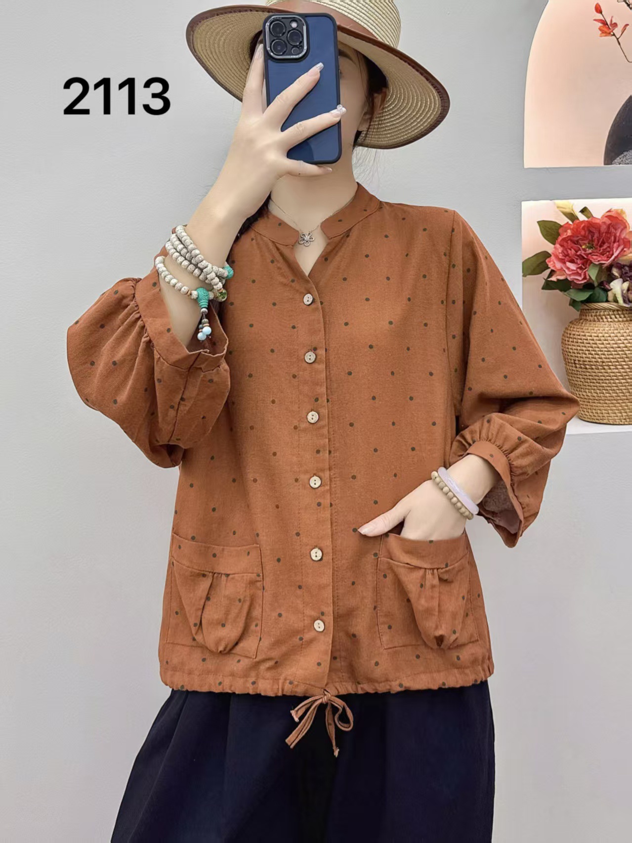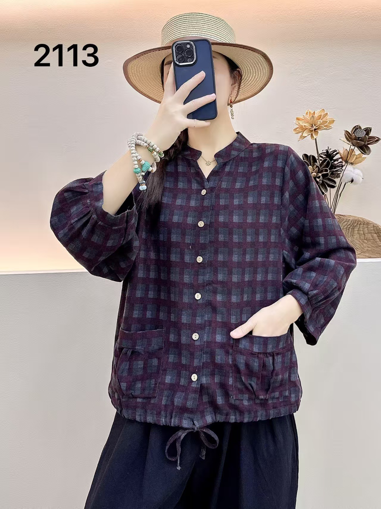 秋季新款水洗棉麻衬衫外套女宽松大码文艺复古中国风女式印花开衫 RMB:27.00