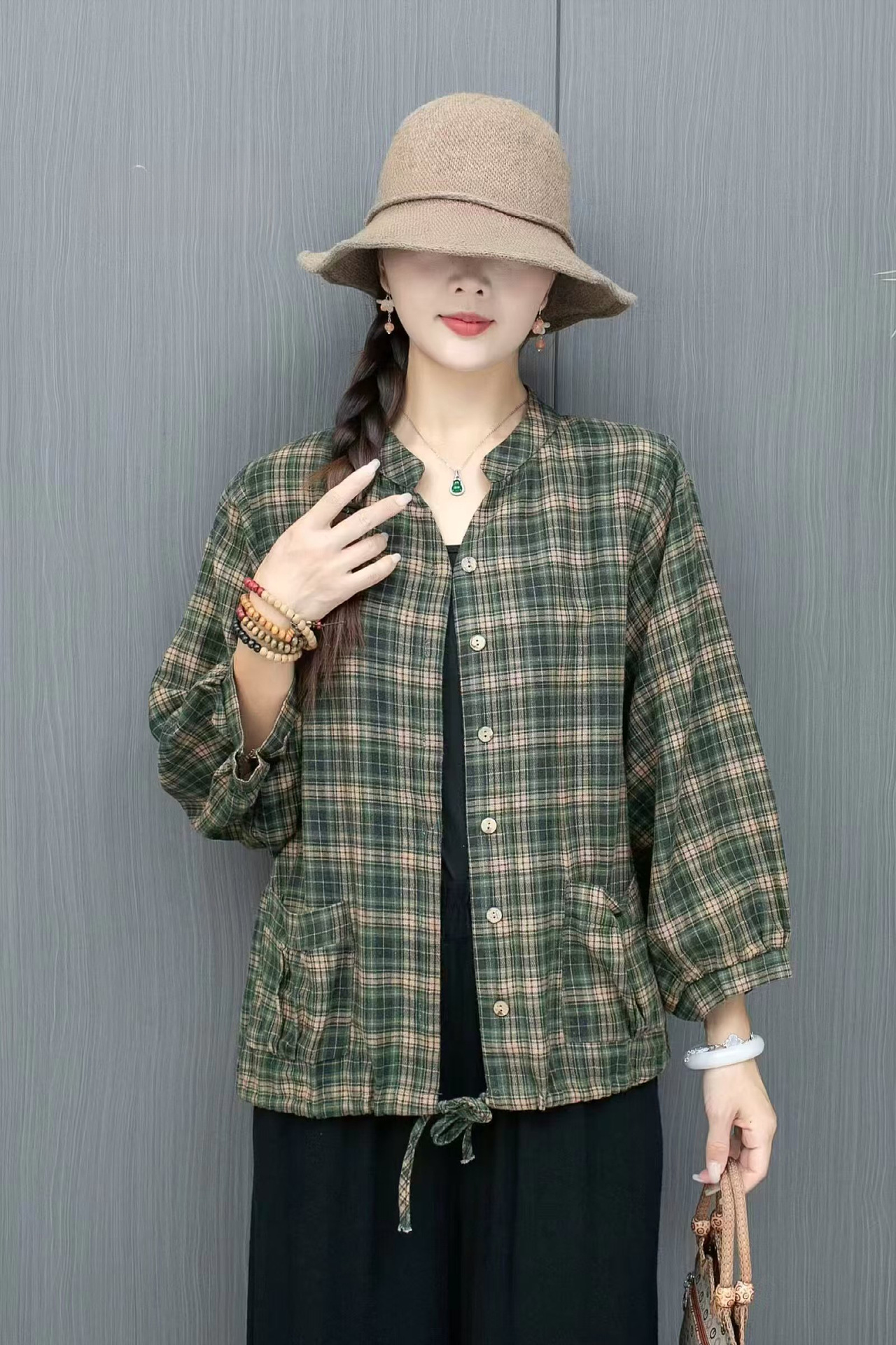 가을 신상품 워싱 면과 린넨 셔츠 재킷 여자의 느슨한 플러스 사이즈 예술적인 복고풍 중국 스타일 여자의 인쇄 카디건스토어 가기