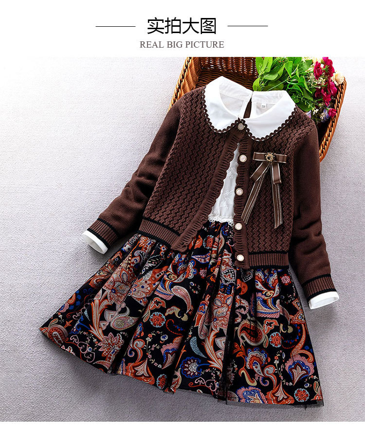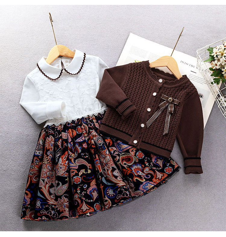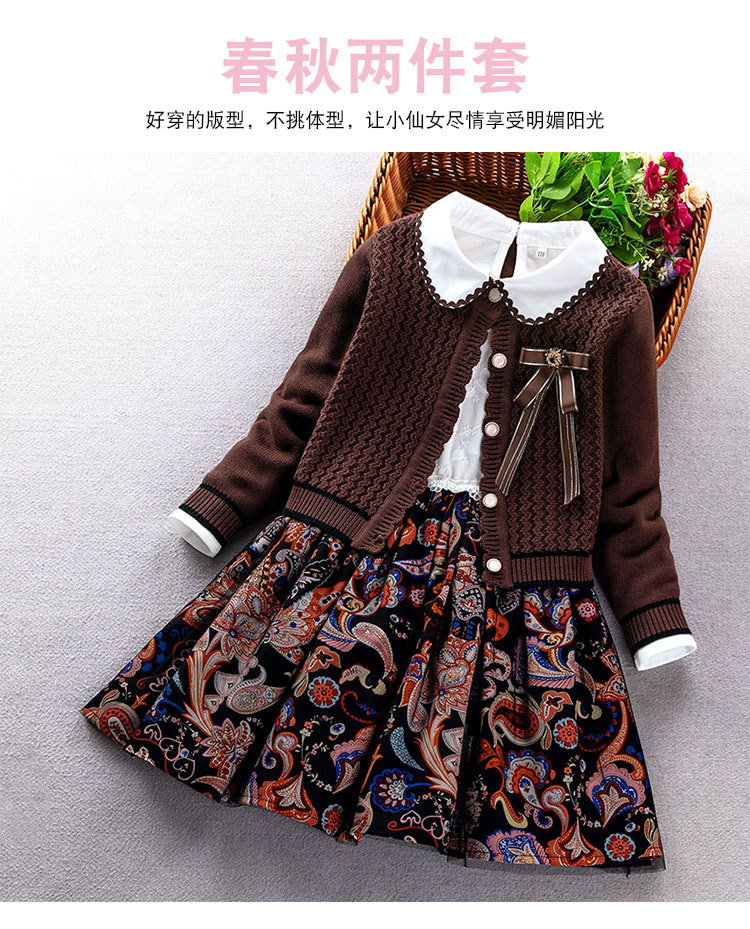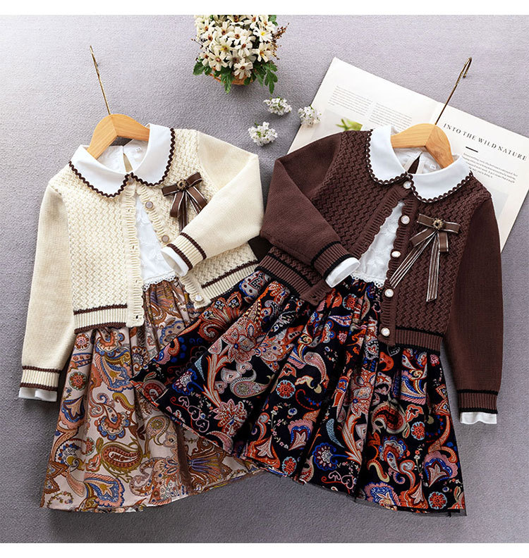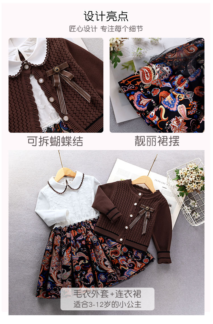 아동복 2023 가을 새 여아 니트 스웨터 세트 소녀의 패션 세련된 공주 원피스 투피스 트렌디스토어 가기