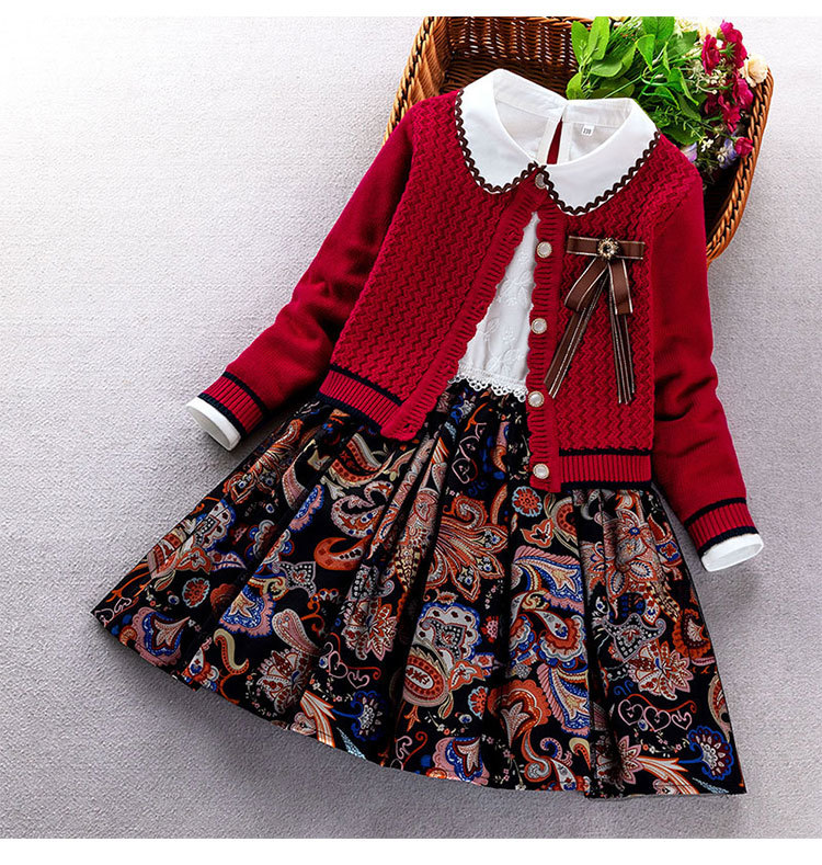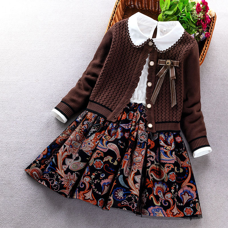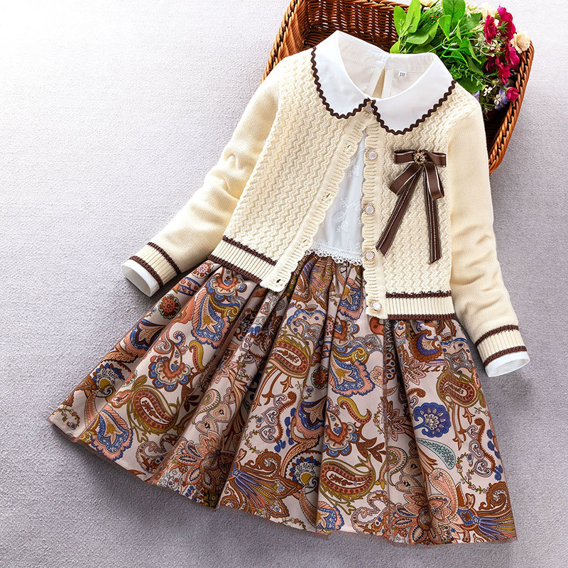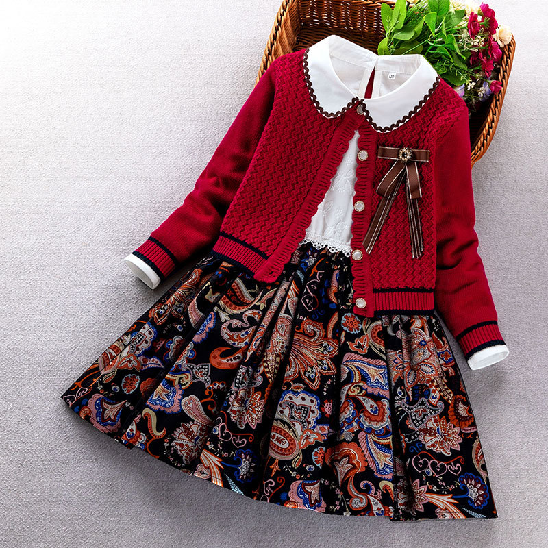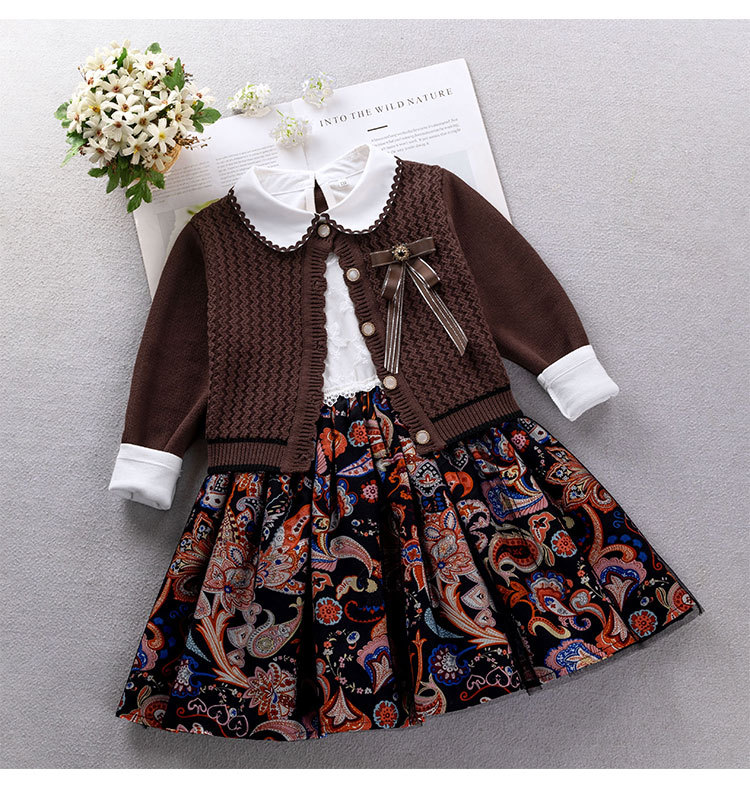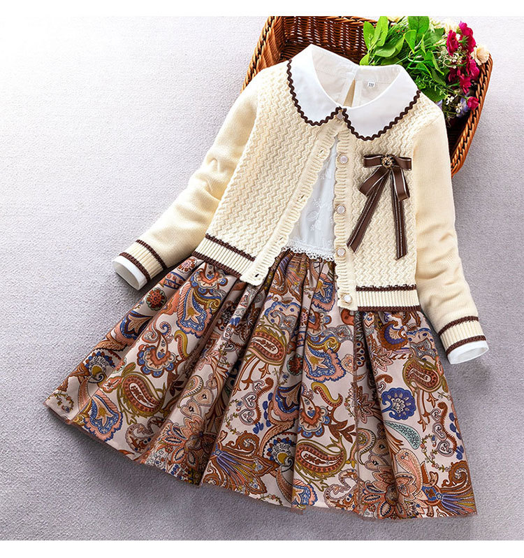 아동복 2023 가을 새 여아 니트 스웨터 세트 소녀의 패션 세련된 공주 원피스 투피스 트렌디스토어 가기
