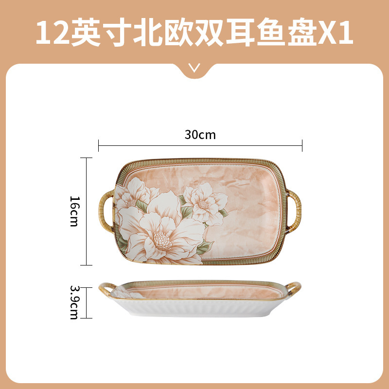 빈티지 북유럽 동백 가정 세라믹 밥 그릇 접시 생선 접시 소스 접시 불 캐서롤 식기 세트 도매