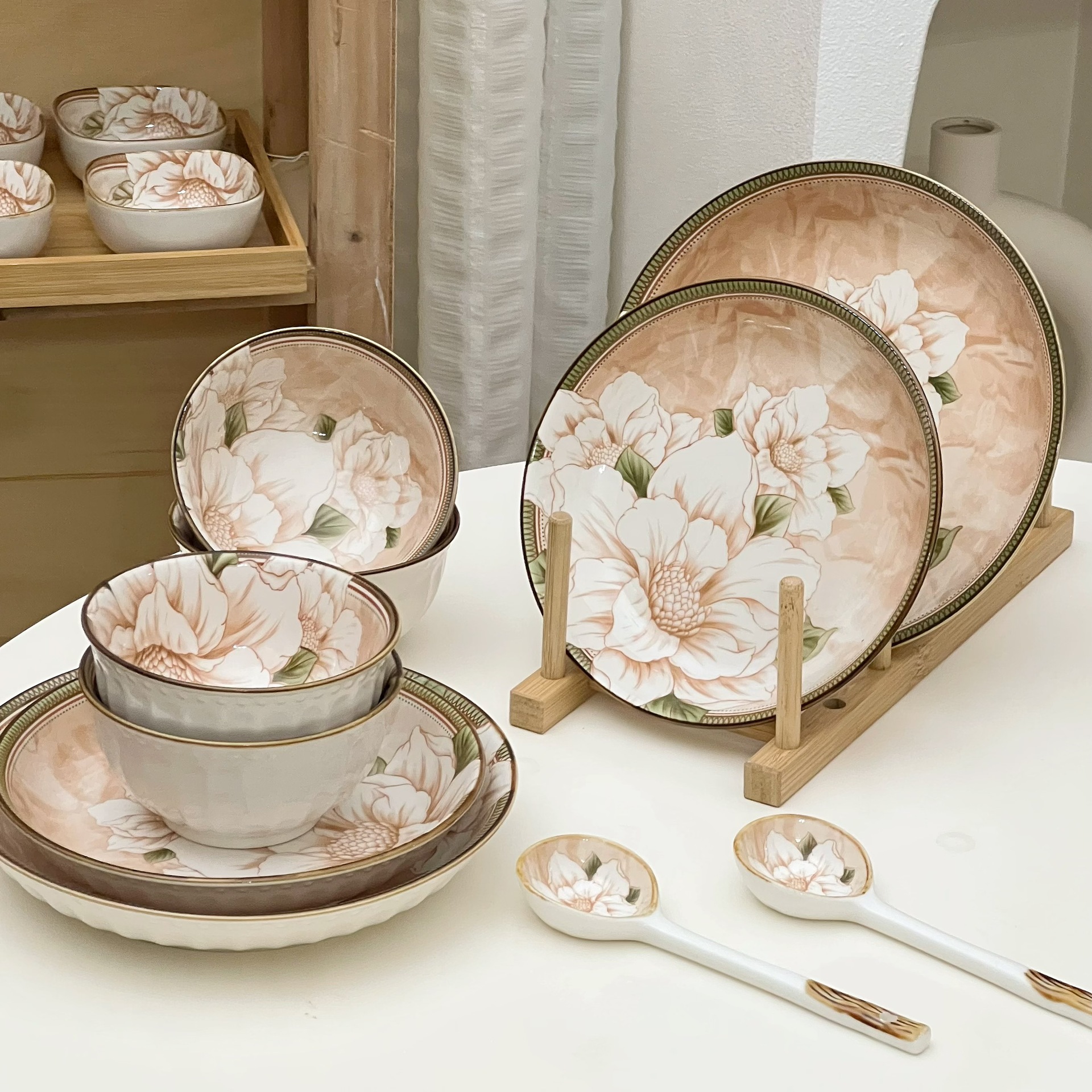 빈티지 북유럽 동백 가정 세라믹 밥 그릇 접시 생선 접시 소스 접시 불 캐서롤 식기 세트 도매스토어 가기