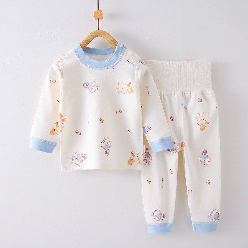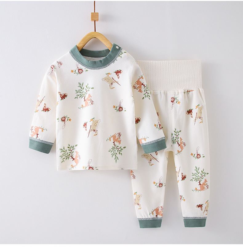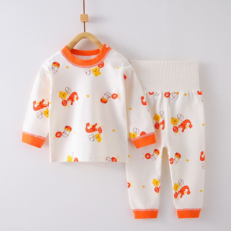 아기의 분할 속옷 세트 순면 아기의 겨울 기본 가을 옷 소년과 소녀를위한 긴 존스 하이 웨이스트 배꼽 보호 잠옷스토어 가기