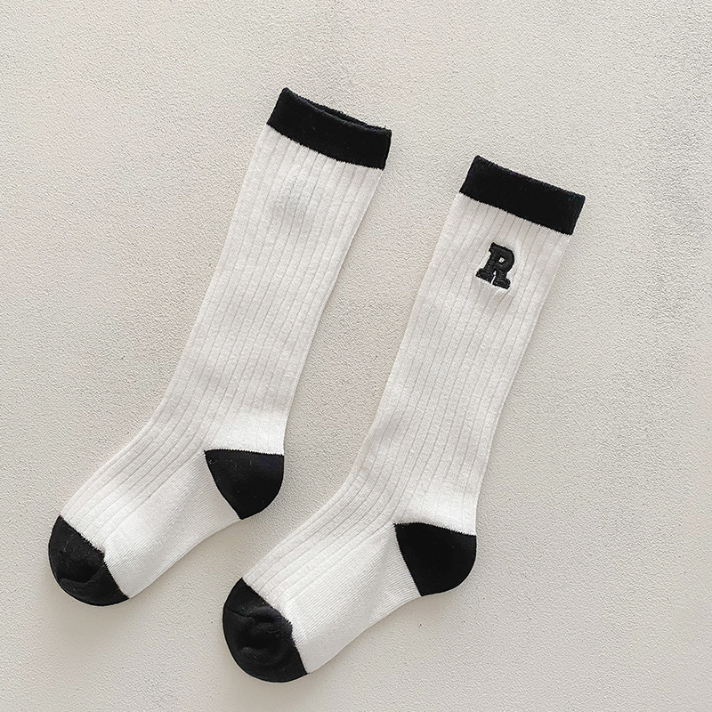 어린이 스타킹 소년과 소녀 높은 스타킹 새로운 가을과 겨울 튜브 자수 편지 아기 스타킹 한국 줄무늬