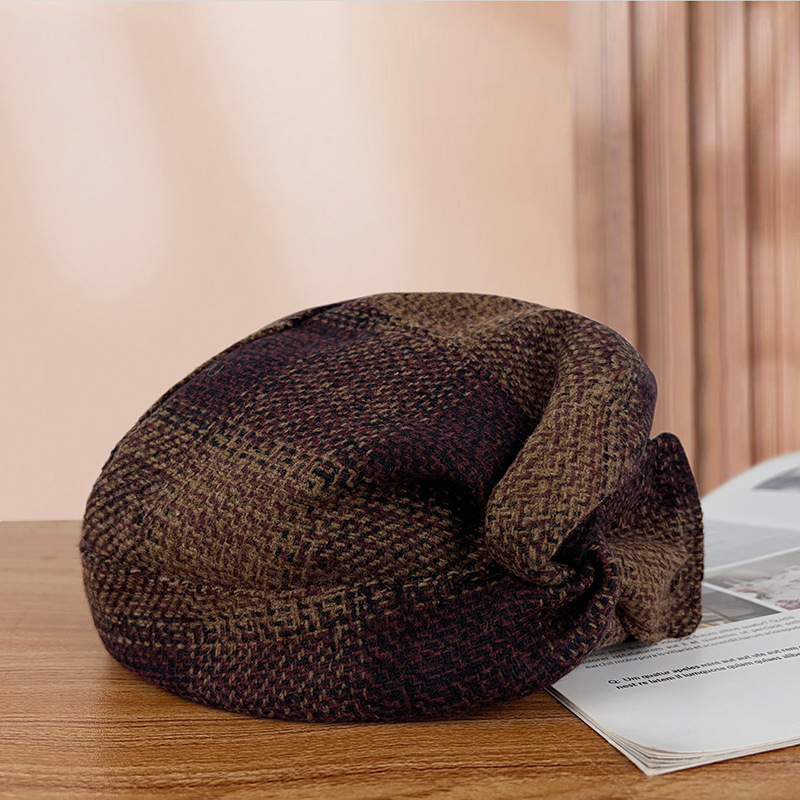 양모 베레모 여성용 가을 겨울 일본 스타일 다용도 큰 머리둘레 얼굴 작아 보이는 따뜻한 화가 모자