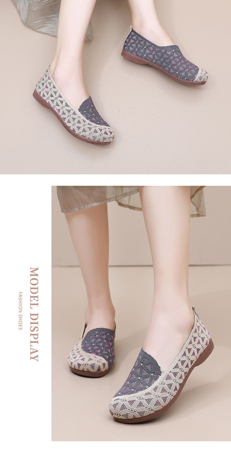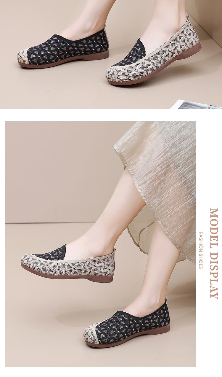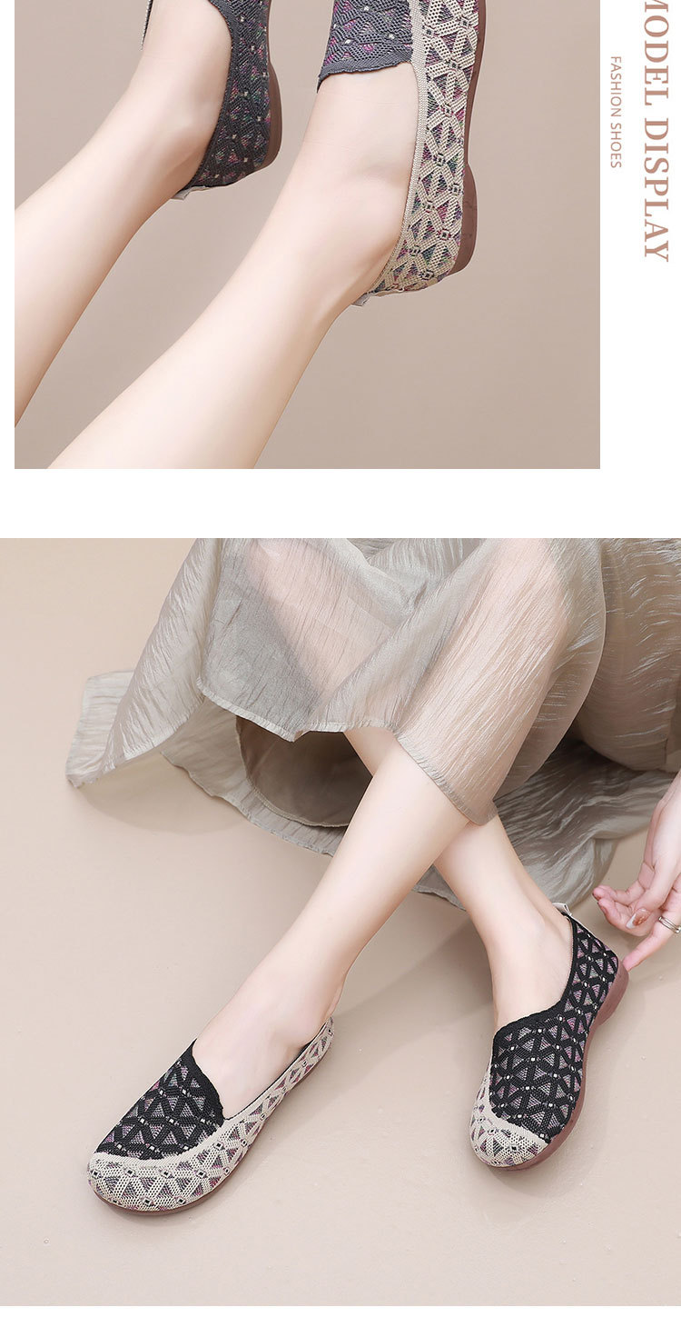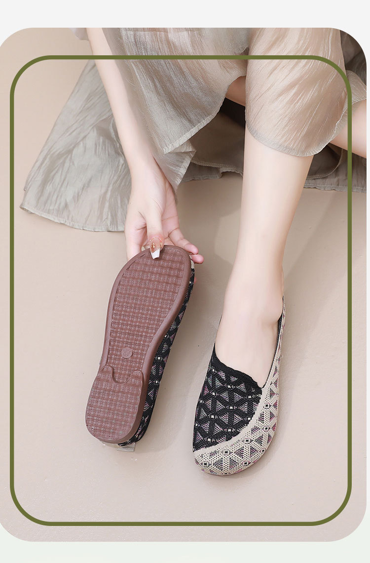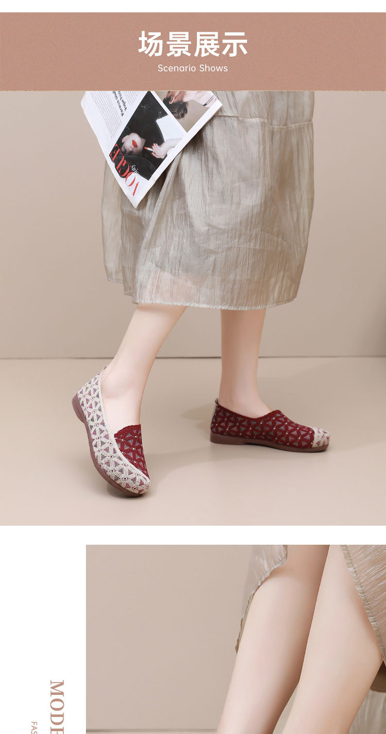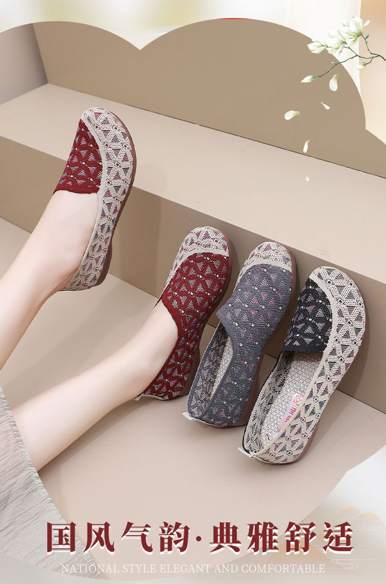 2025 새로운 스타일의 오래된 베이징 가을 여성 신발 플랫 힐 부드러운 밑창 캐주얼 게으른 신발 통기성 얕은 입 어머니의 천 신발