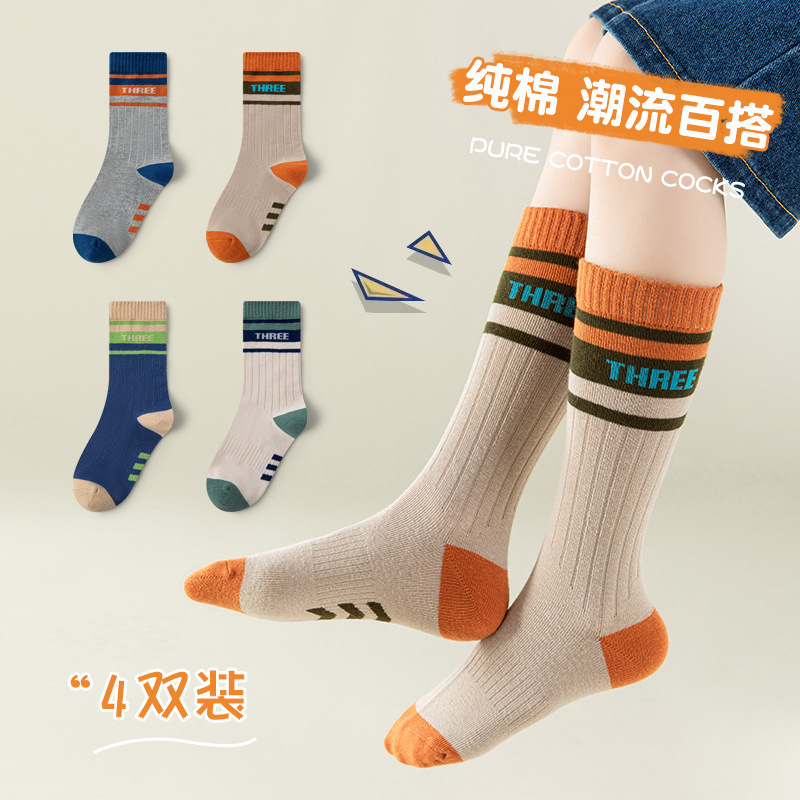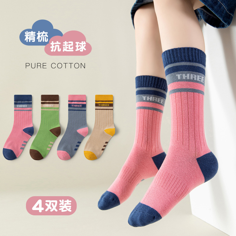가을과 겨울 어린이 양말 중간 배럴 유행 양말 스포츠 빗질면 통기성 땀 흡수성 순수 중간 배럴 소년과 소녀 학생 봄과 가을스토어 가기