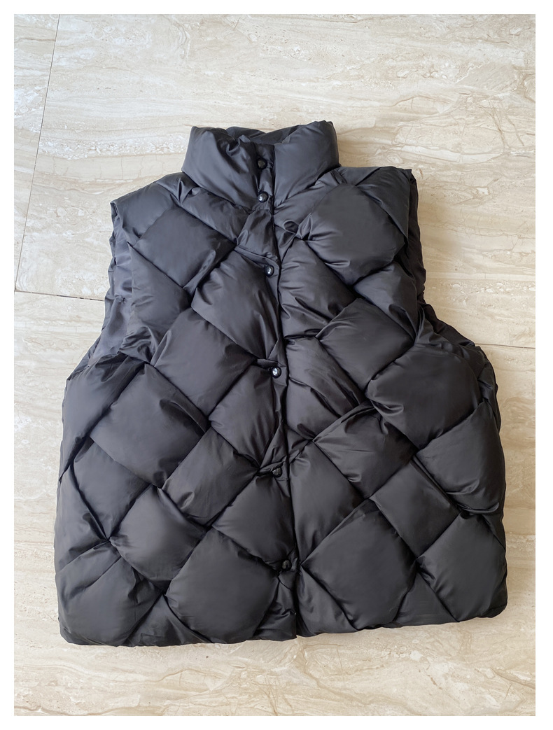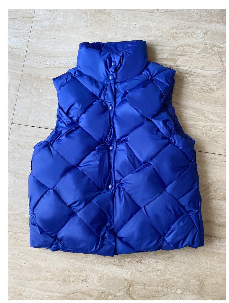 쇼트 다운 코튼 조끼 여성용 2023 가을과 겨울 새로운 수직 칼라 마름모꼴 짠 민소매 얇은 녹색 유행 조끼스토어 가기